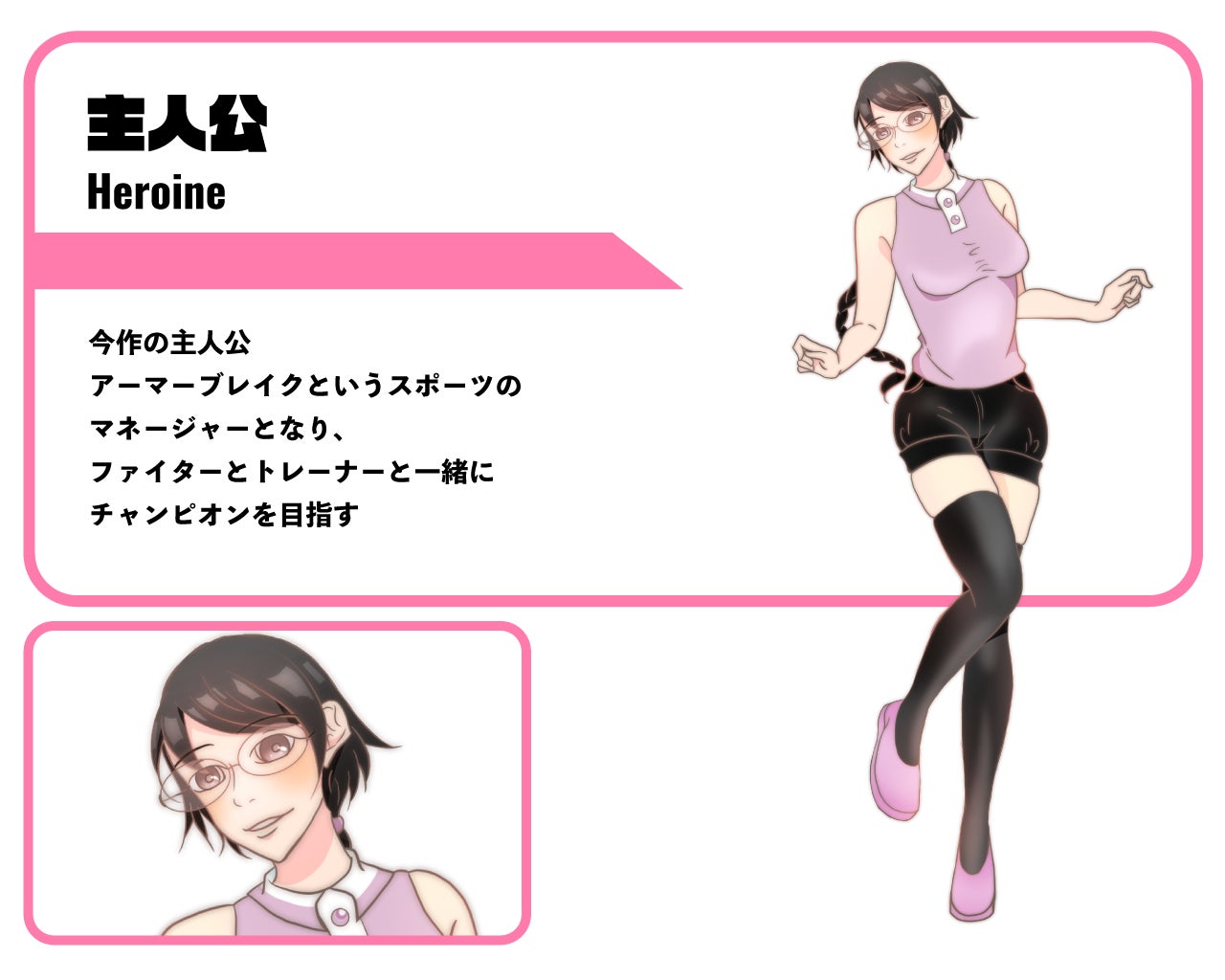 この乙女ゲームは『アーマーブレイク』という筋肉質でたくましい5人のスポーツ選手のマネージャーになってチャンピオンを目指す乙女ゲームです。従来の言葉を選んでその選択肢で好感度が変化するタイプではなく、ミニゲームで勝つとストーリーが進むシステムになっています。