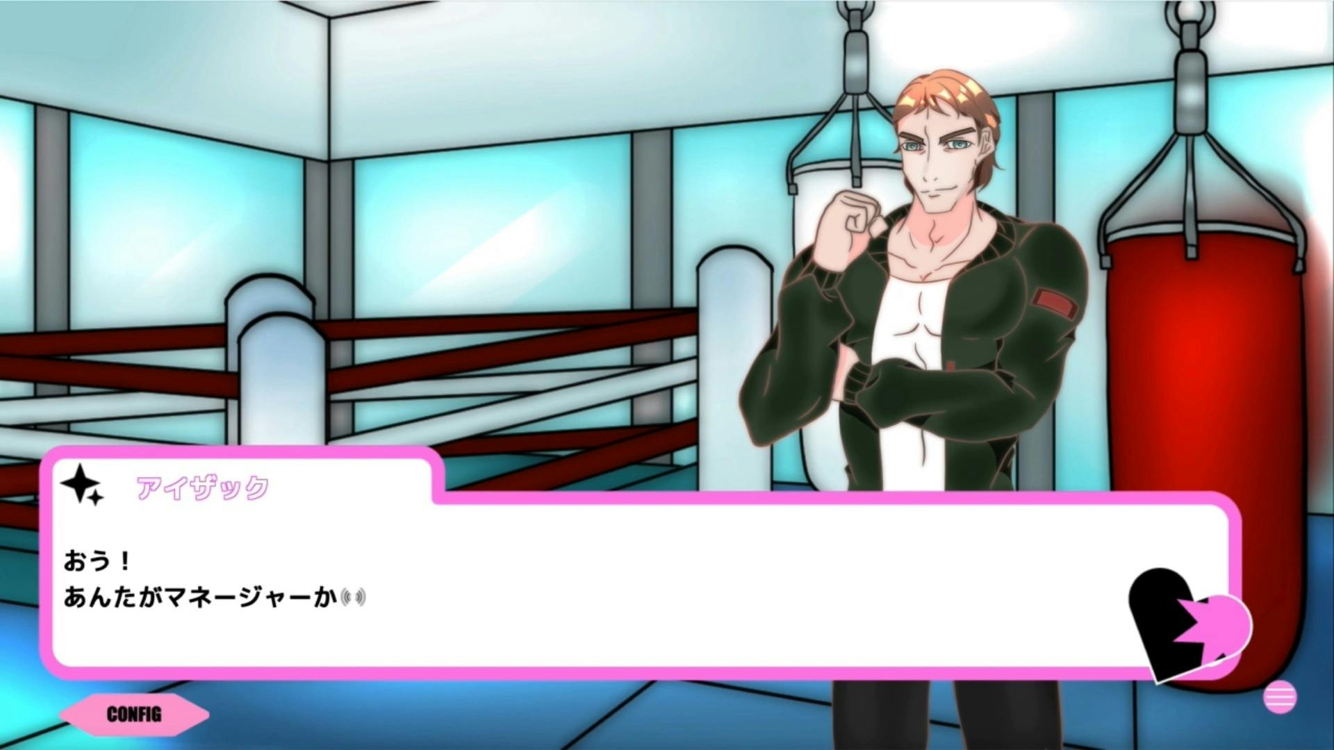 この乙女ゲームは『アーマーブレイク』という筋肉質でたくましい5人のスポーツ選手のマネージャーになってチャンピオンを目指す乙女ゲームです。従来の言葉を選んでその選択肢で好感度が変化するタイプではなく、ミニゲームで勝つとストーリーが進むシステムになっています。