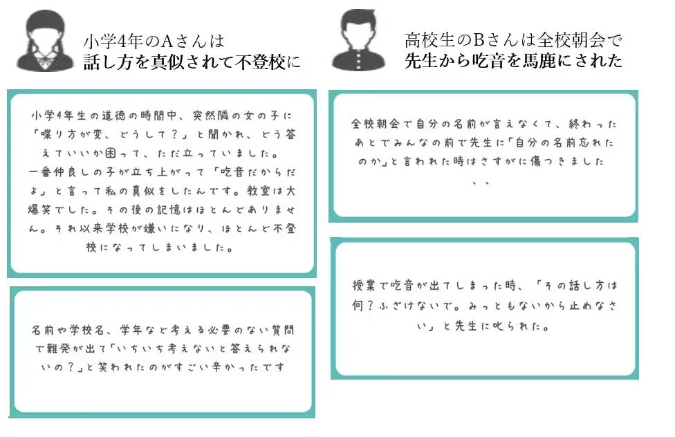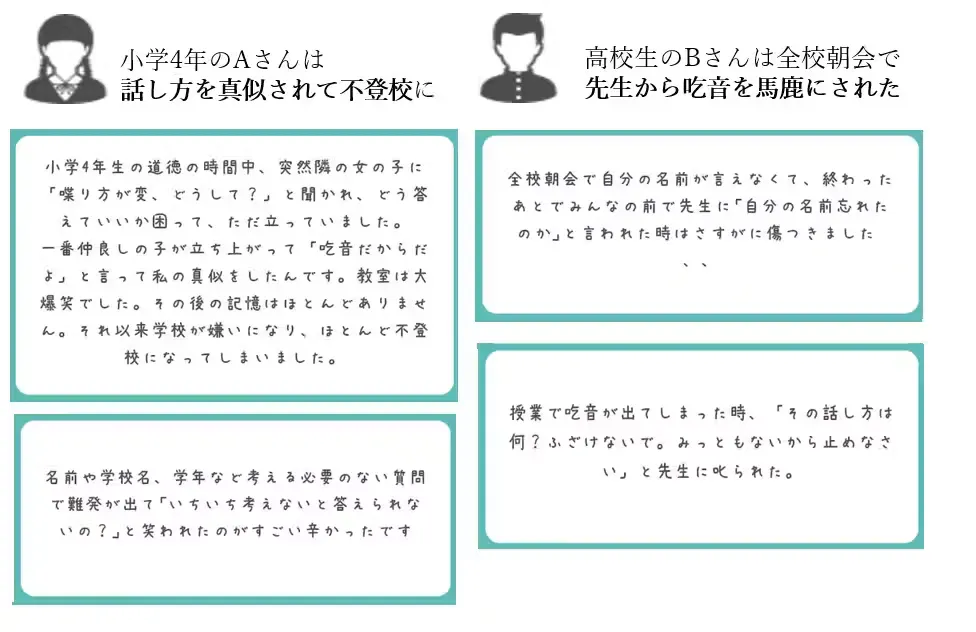 吃音に対する無理解や認知の低さから、学校や家庭で辛い経験をした子供が大勢います。