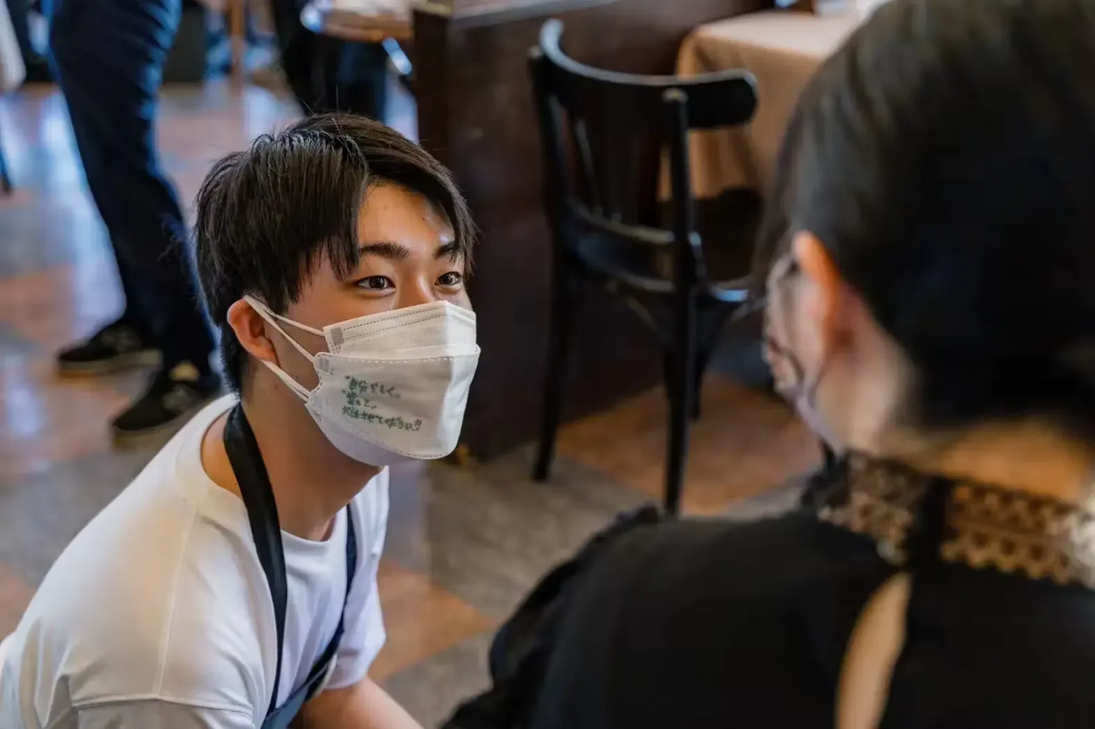 そのため、スタッフは自分のマスクの頬部分に自分が求めるニーズを記載しています。