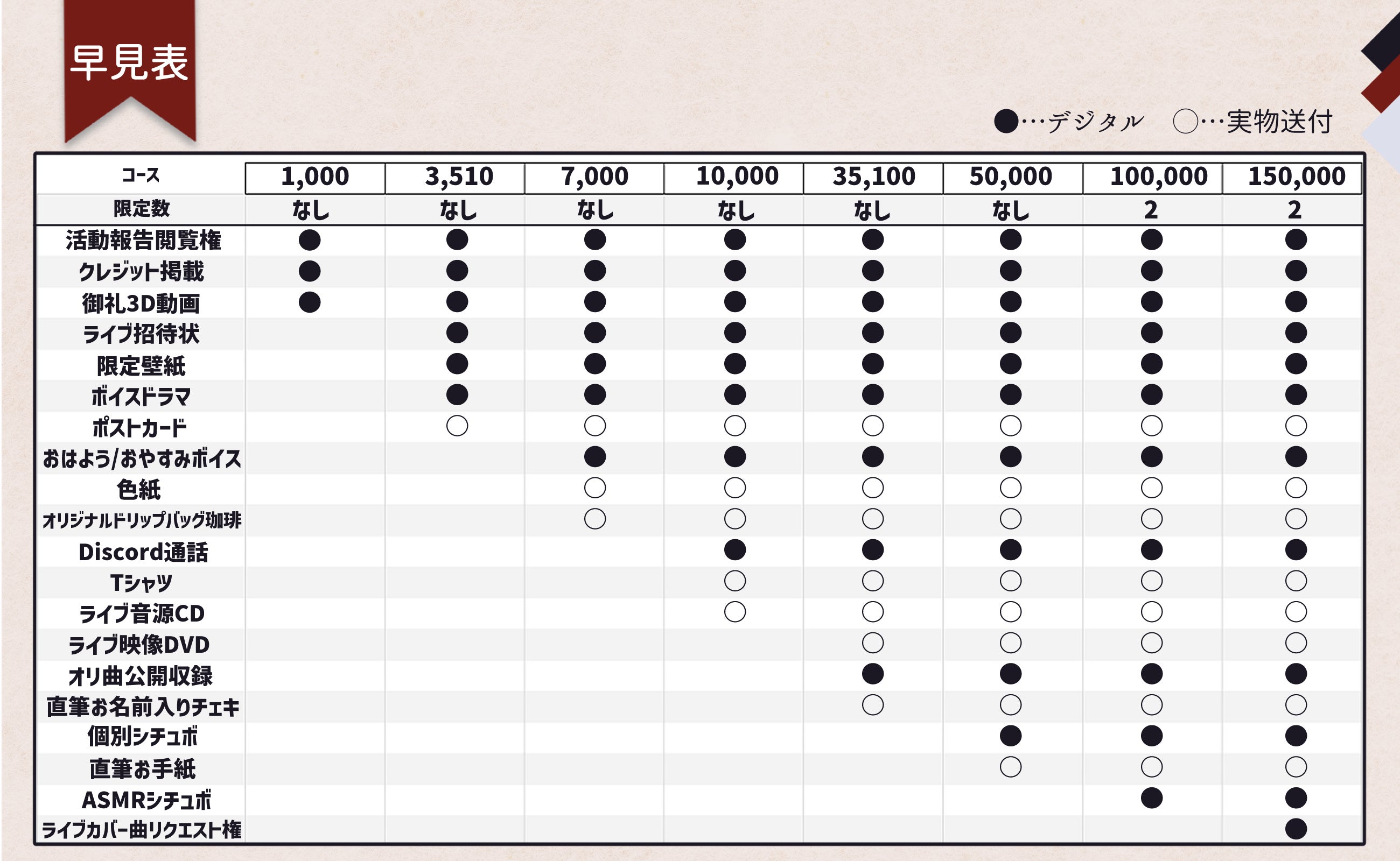 内容は【ライブご招待コース】までのデータ類。