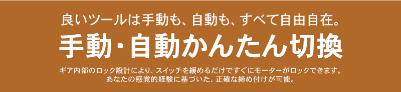 電源オフのときは手動操作になり、電源オンにすると自動に切り替わります。万が一のバッテリー切れでも、作業を継続できるので安心です。