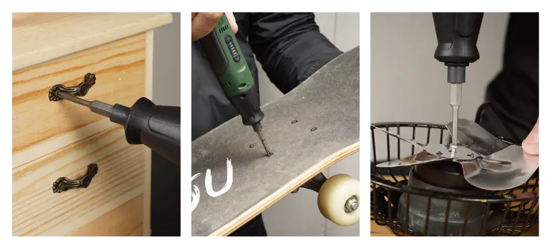 ▲DIYで使いたいネジのサイズが違うのは想定済。MAKER IVは用途に合わせてドライバービットを交換することで、スムーズに使用できます。また様々なサイズや形状のネジに対応し、作業効率や多機能性に優れています。