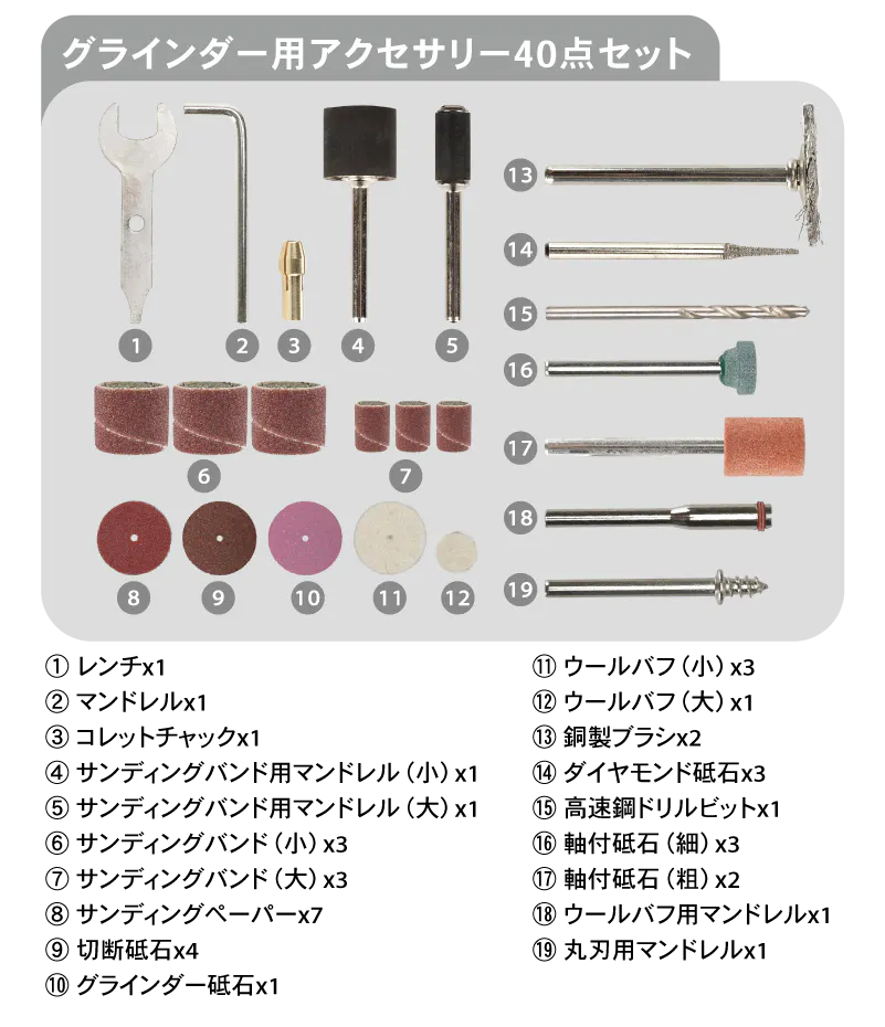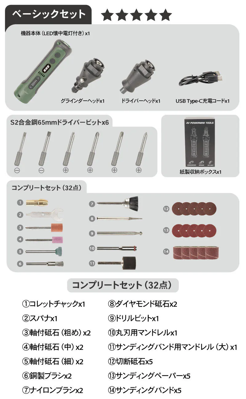 ベーシックセットは、グラインダーヘッド・カッターヘッドのみの付属です。用途に合わせて最適なセットをお選びください。