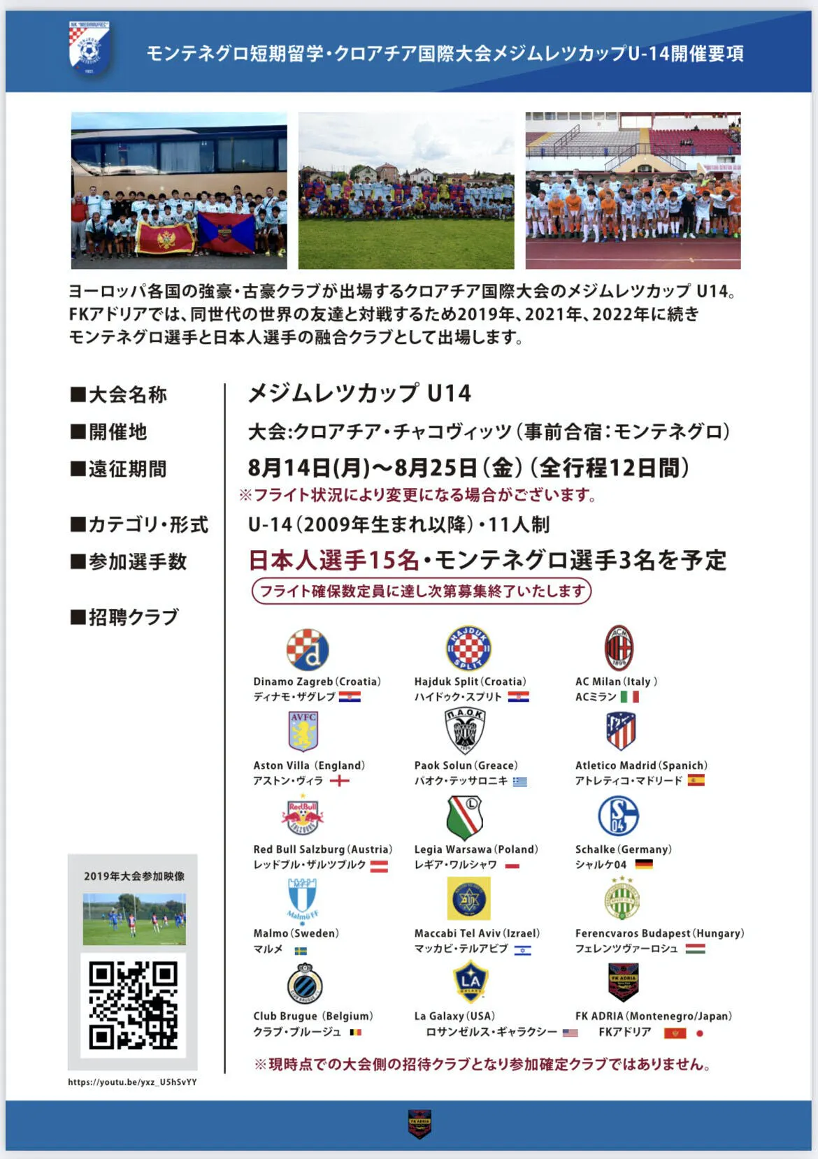 日本ではあまり知られていないクロアチアやモンテネグロの育成現場や、メジムレツカップの裏側など貴重な映像を収録させて頂きます。