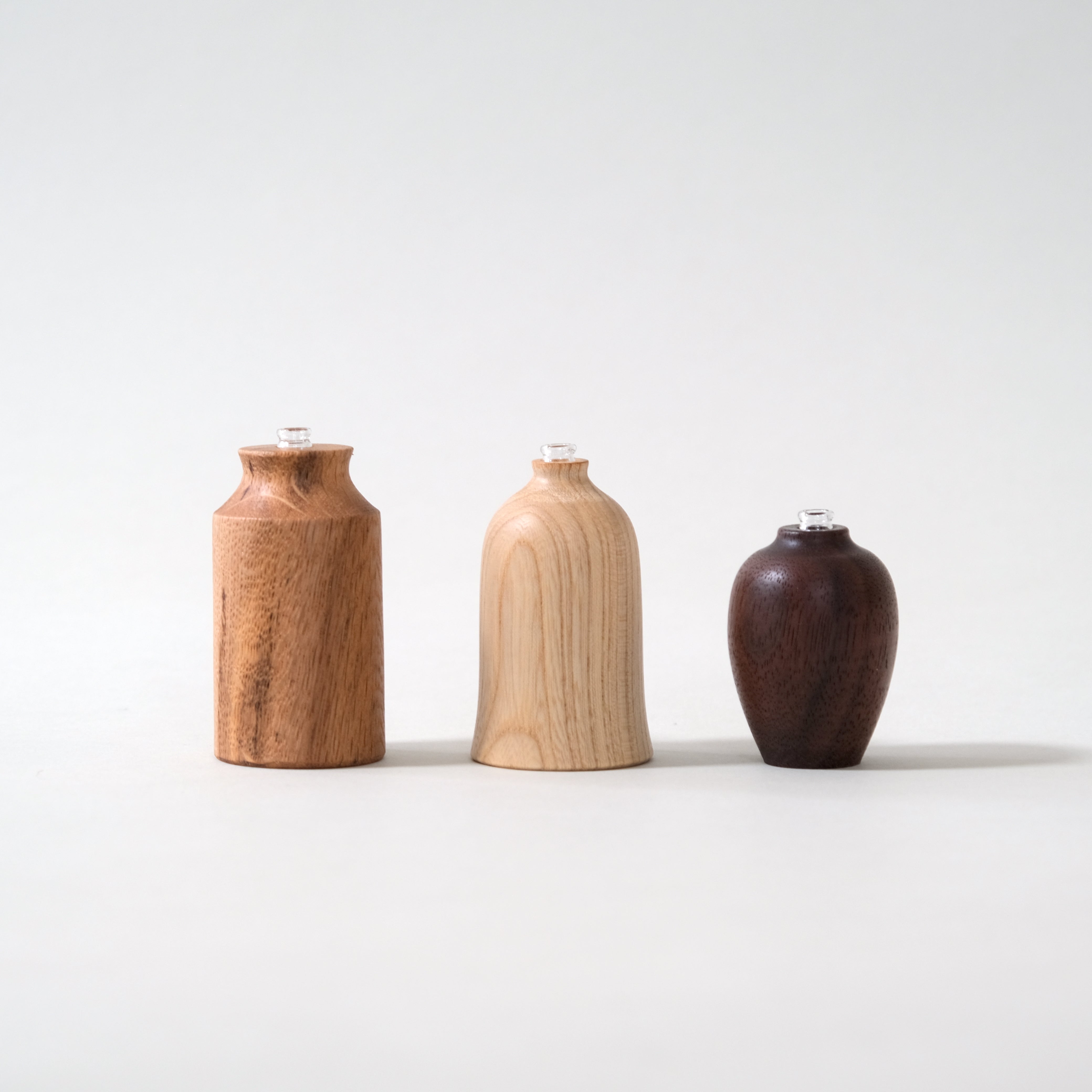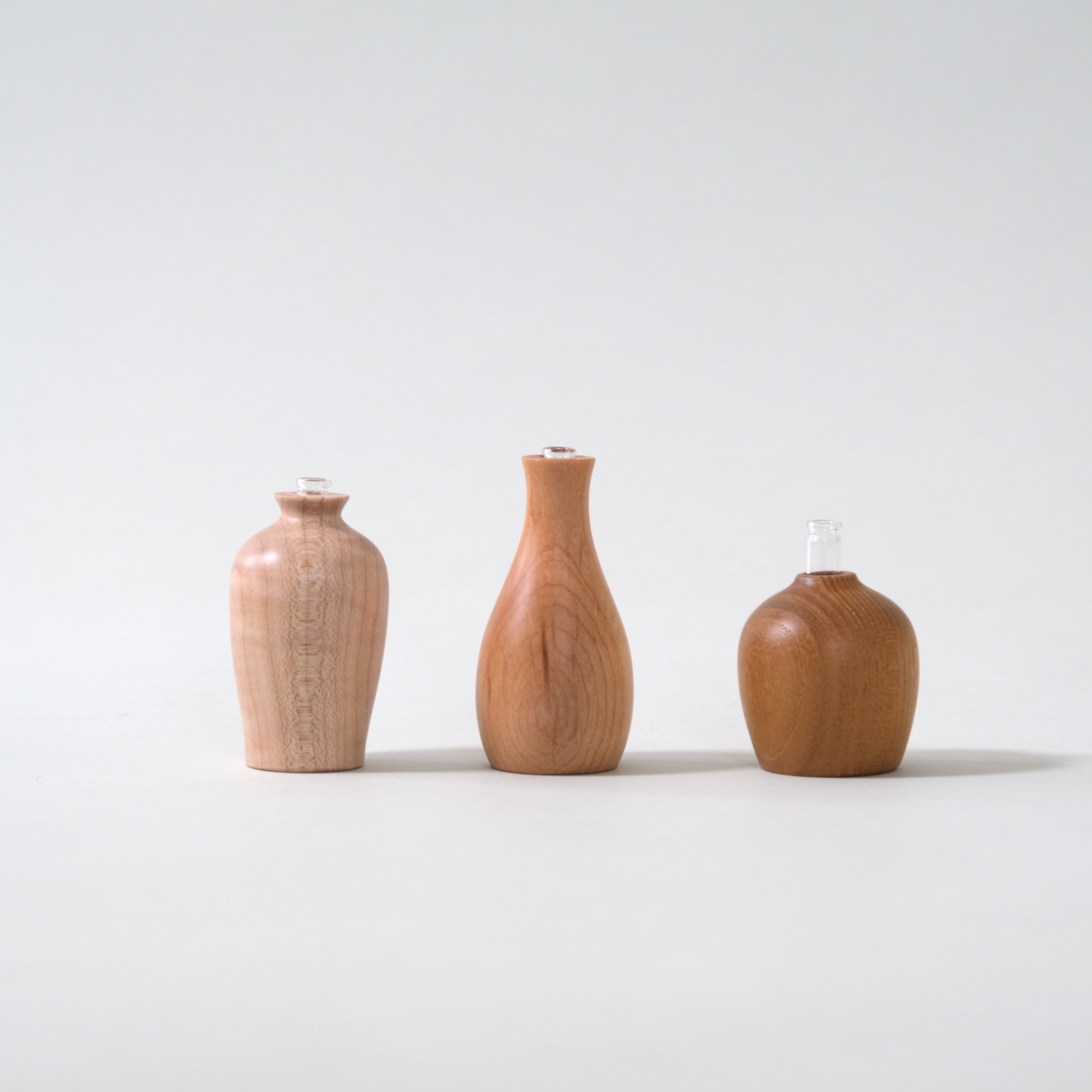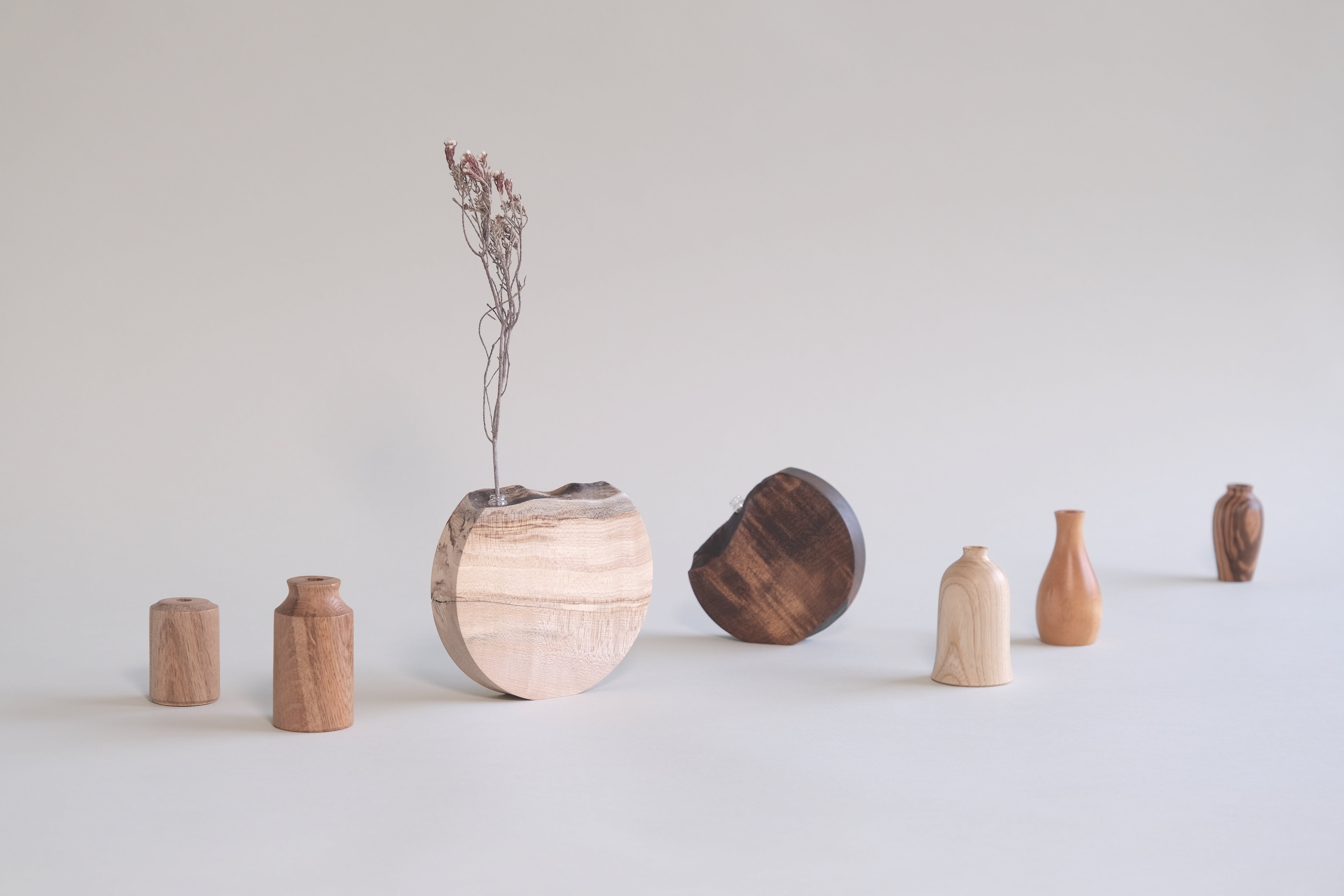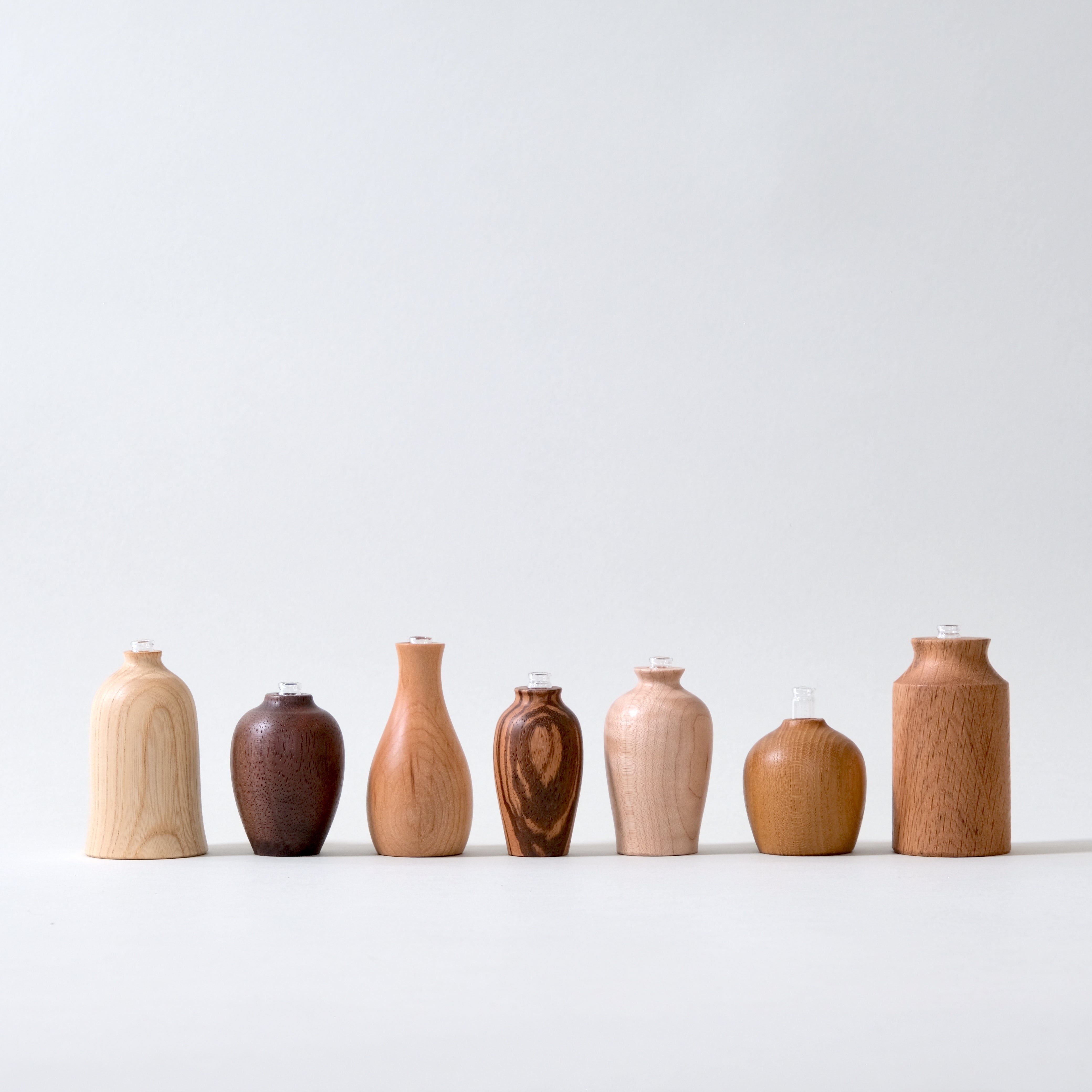 宮島ろくろの技法を活かした一輪挿しです。すべて一点ものですので、1つ1つ木目が異なります。