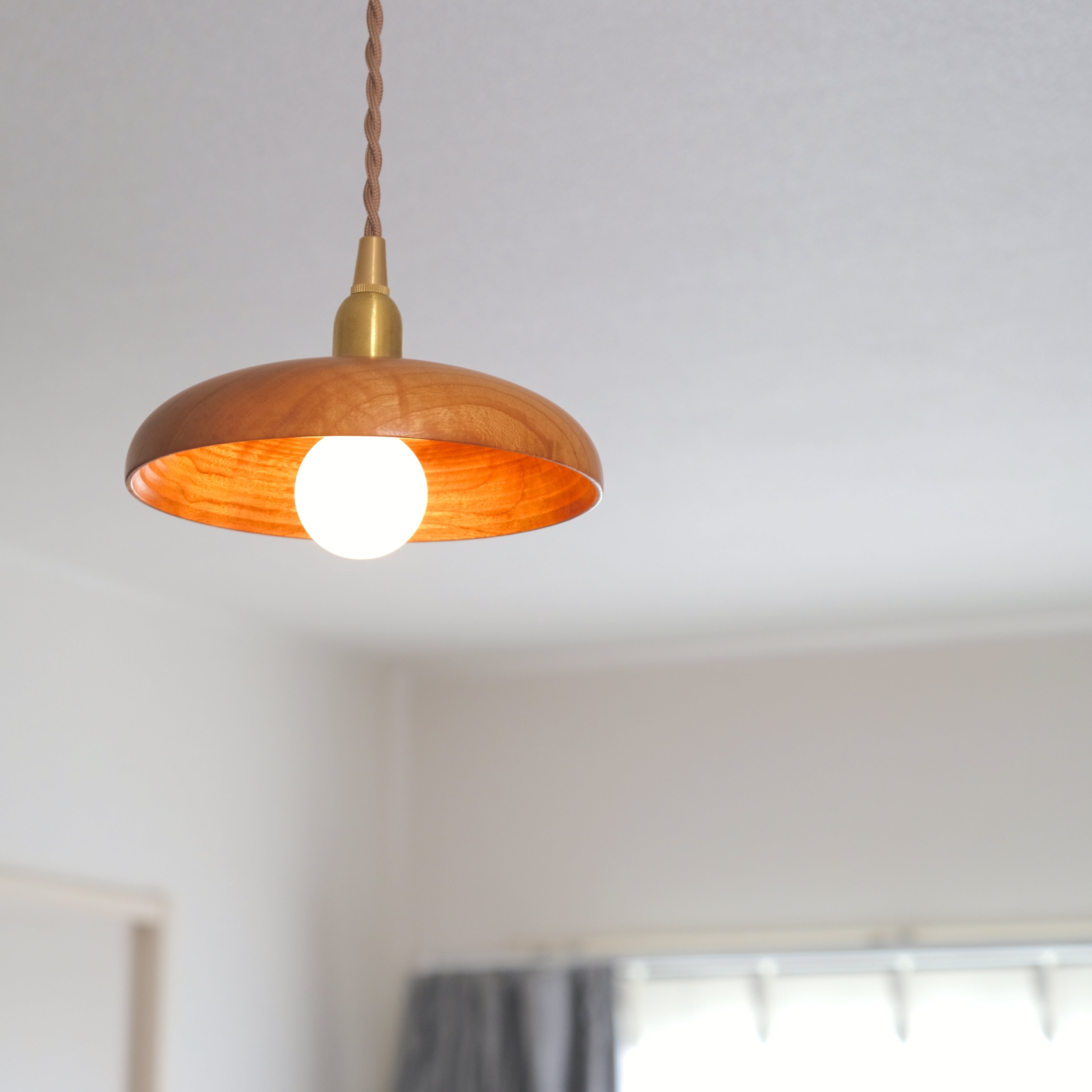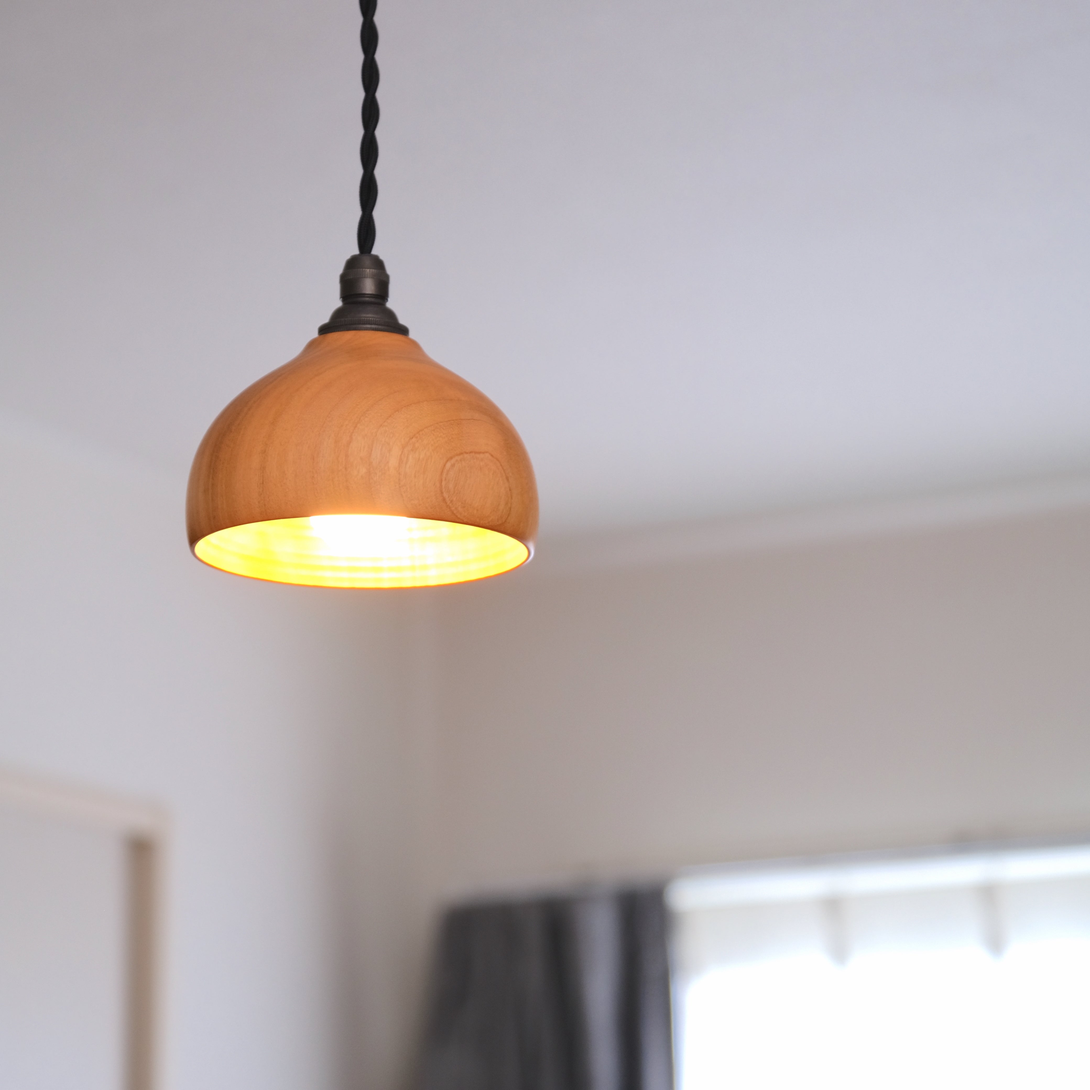 宮島ろくろの技法を活かした一点もののランプシェードです。柔らかな木の温もりが楽しめます。E17口径のLED電球がお使いいただけます。