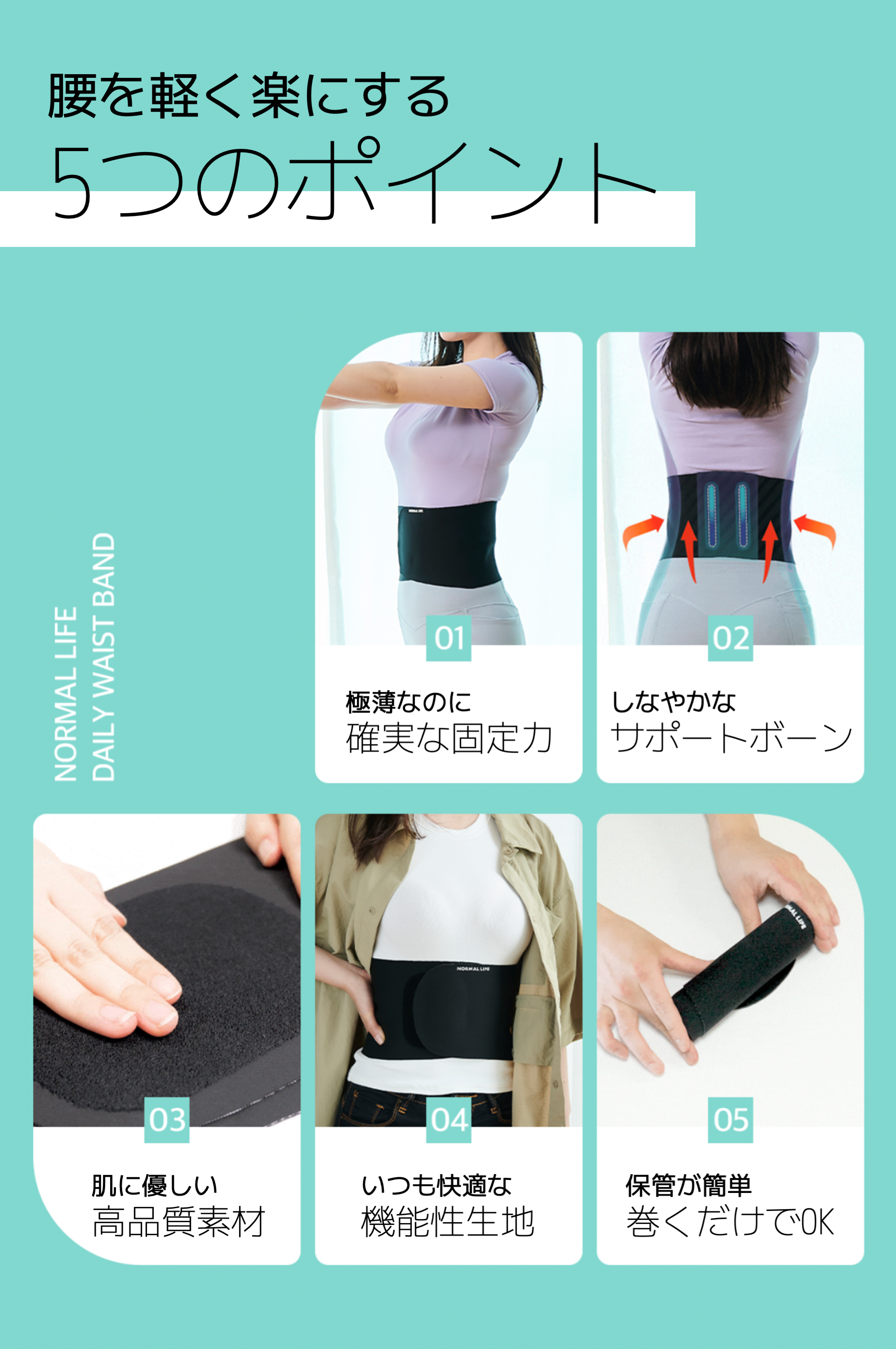 薄くても確実な固定力で、いつでもどこでも快適かつ確実にあなたの腰をサポートします。