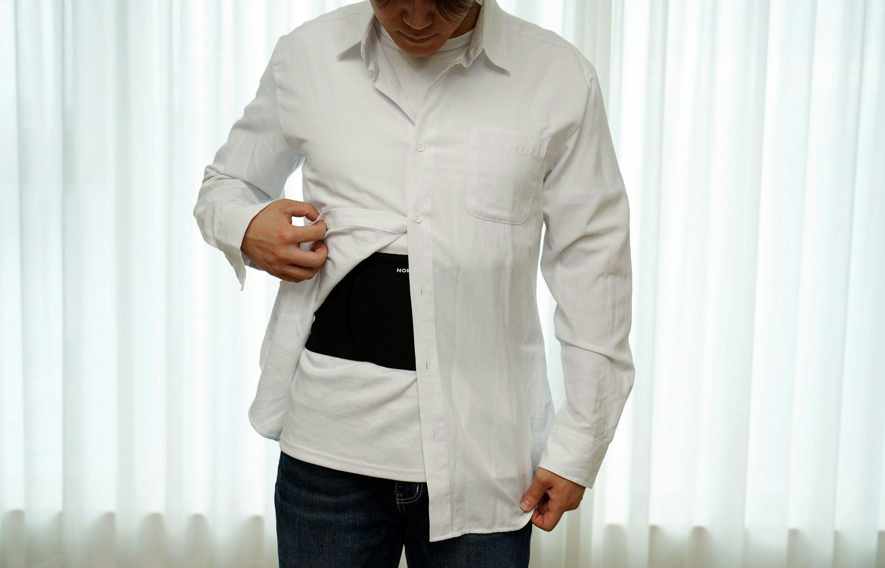 A:はい、着用可能です。本製品はインナーの上に着用し、上着を着てもラクで動きやすい姿勢補正腰サポーターです。素肌よりは、インナーやTシャツの上に着用することをおすすめします。