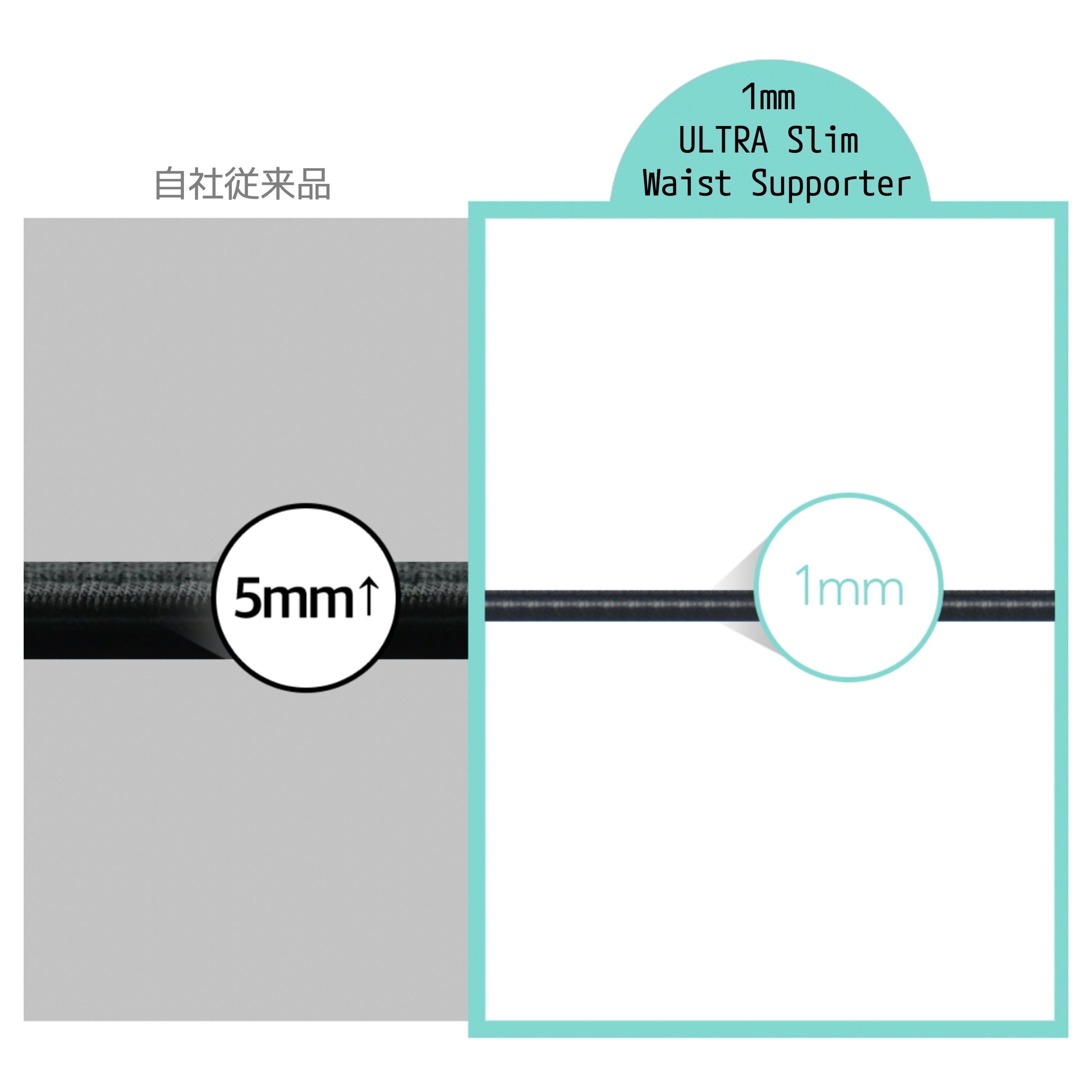 腰をしっかりサポートしつつも、邪魔にならない僅か1mmの薄さを実現しました。