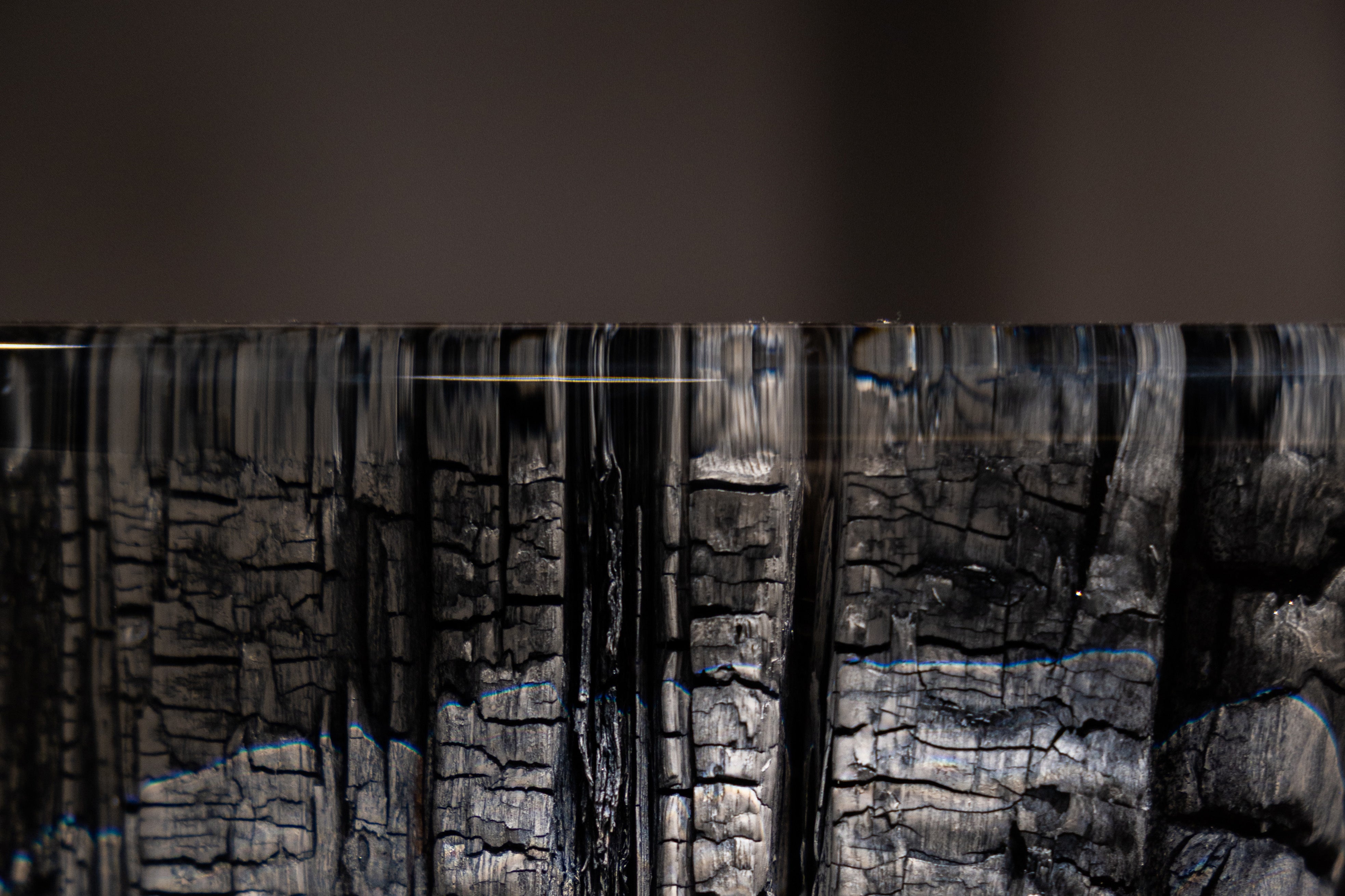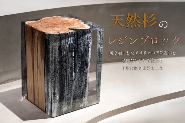 熟練の木職人が天然のアメリカ香杉を焼き加工し、クリスタルのような透明なレジン加工をして丁寧に磨き上げた美しいレジンブロックです。