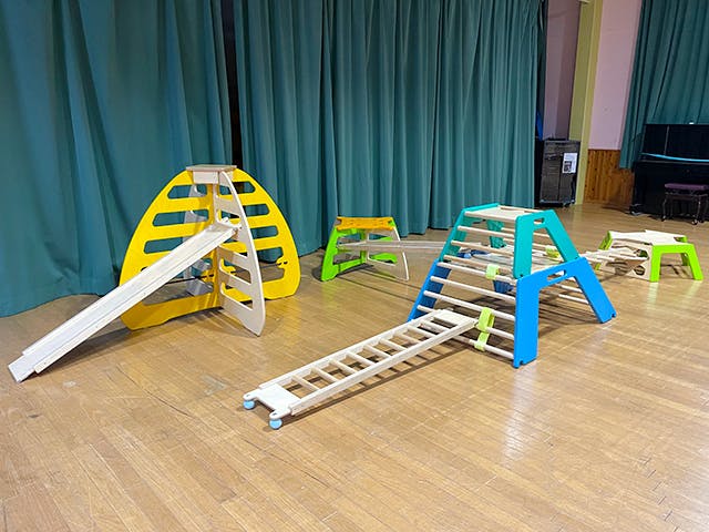 画像提供:オオニシ体育株式会社様巧技台®とは、滑り台や鉄棒・平均台・はしごなどを複合した室内遊具です。組み合わせが自由自在で、高さを変えたり、傾斜をつけたりすることができ、遊ぶこどもの年齢や障害に合わせて難易度を調整できるのが特徴です。