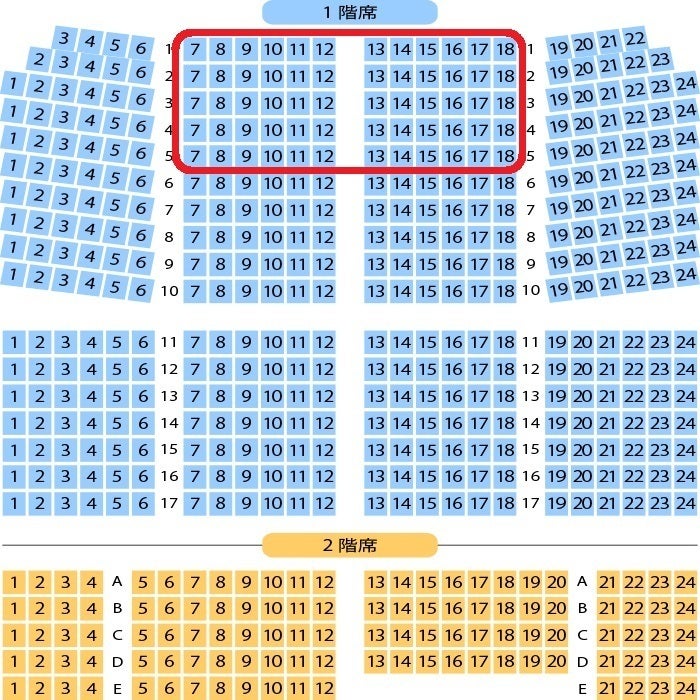 観劇チケットは、先行予約特典として三越劇場の真ん中の前方のお席(赤枠内)を確保しております。ご予約順にお席を決めさせていただきます。