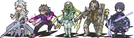 2018/04/12 15:59今回は新作『いんぷろ!バトル』のロールプレイカード5枚を紹介します! ▼ロールプレイカード①:銃刀の奏者(ガンブレイド)▼ 闇に堕ちてしまった兄、《“天才剣士”セラフ》を止めるために暗黒機械帝国と戦うことを誓った剣士。ひとたび戦いが始まればヘッドフォンからイカした音楽が流れ、戦場にビートを刻む。 武器はガンズ&ローゼス。剣と銃が合わさった最強武器だ! ▼ロールプレイカード②:龍拳の侠女(ドラゴン・レディ)▼ 強さを追求した結果、暗黒機械帝国に寝返った師父である《“孤高求敗”超竜王》率いる超竜派の門弟たち。最強の弟子である龍拳の侠女は、そんな師父やほかの弟子たちを倒すため暗黒機械帝国と戦うことを誓う。 武器はドラゴンフォース。拳の力を極限まで増幅する超竜派の秘宝だ! ▼ロールプレイカード③:無影の機忍(サイボーグ・ニンジャ)▼ 暗黒機械帝国の最強忍者製造計画「Nin-Jya X」によって望まぬ改造を受けた機忍軍団の抜け忍。すべてを奪った暗黒機械帝国に復讐するため、自分と同じ運命を辿る者を生み出さぬため、暗黒機械帝国の打倒を決意する。 武器はスレイヤー。このサイバー忍具の数々を駆使して最強のNin-Jya殺法が炸裂する! ▼ロールプレイカード④:魔弾の射手(デア・フライシュッツ)▼ かつて復讐を果たしたはずの《“皆殺しの”ビル》が機械化して黄泉帰った。かつての無力な少女は、今度こそ自らの手で奴に引導を渡すべく、血の滲むような訓練により戦う力を手に入れた。 武器はナパームデス。機械を無力化するために作られた規格外の巨大ライフルだ! ▼ロールプレイカード⑤:無双の剣聖(ザ・セイント)▼ 自らの技をすべて伝えた弟子は、機械の暗黒面に堕ち《“黒騎士”ダークスター》として暗黒機械帝国の軍門に下った。弟子の不始末は師匠が片付けなければならない。 武器はアイアンメイデン。無数の名刀妖刀の類が収納された棺桶だ! もっと見る