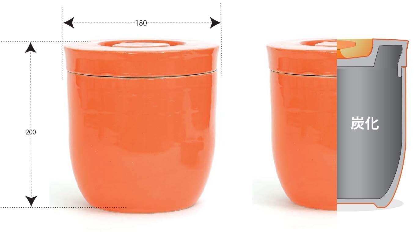 特徴は、ピクポット本体の内壁を炭化焼成する事で表面が多孔質化し、備長炭を使用した時と同じ効果が得られます。