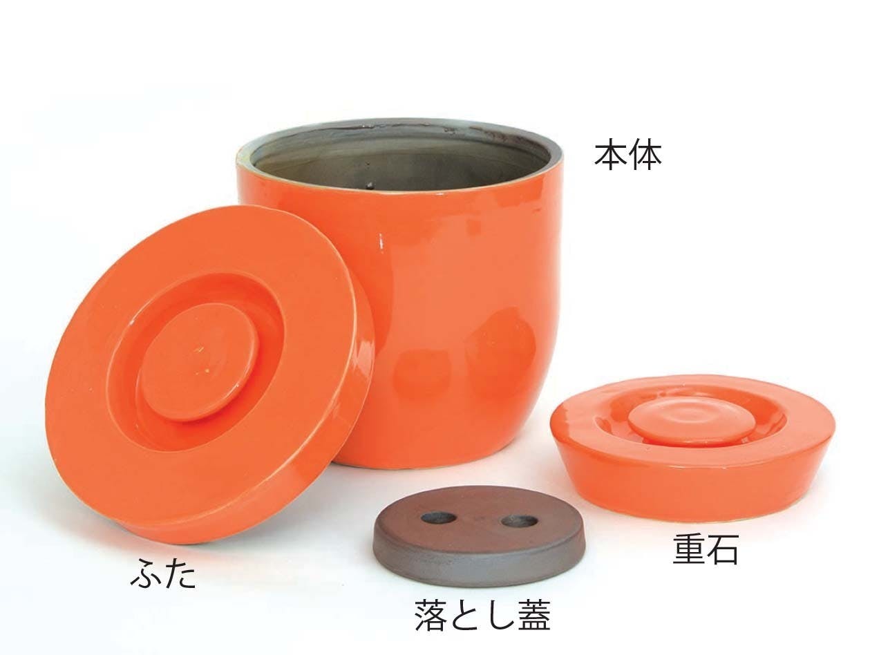 付属品に関しては、重石と落としぶた、専用レシピをお付けしております。重石の重さは過去の経験からある程度の野菜に適応できる重さにしております。また落とし蓋は重石では足りない加重を補うことと、成分に鉄分を多く混入させており、野菜を漬ける為に必要な要素を多く取り入れております。