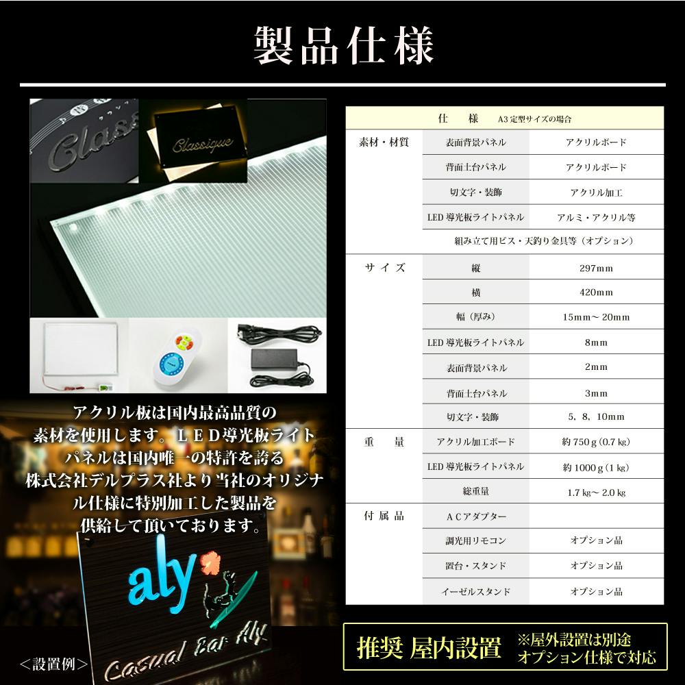 LEDおしゃれART看板はLEDライトパネルとアクリルボードの取り外しが可能!だからアクリルボードだけを別のものに変えて使うこともできます。たとえば、季節ごとに異なるアクリルボードを用意してシーズンごとに切り替えることも。いろんなアクリルボードをつくって時期や場所、シーンなどに応じてお好きなLEDサインを設置できることが魅力です。