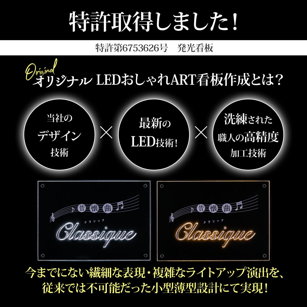 〇類似品・模倣品が出回っている場合がございます。弊社のLEDおしゃれART看板は特許取得済の正規品です。お間違えのないよう、くれぐれもご注意ください。