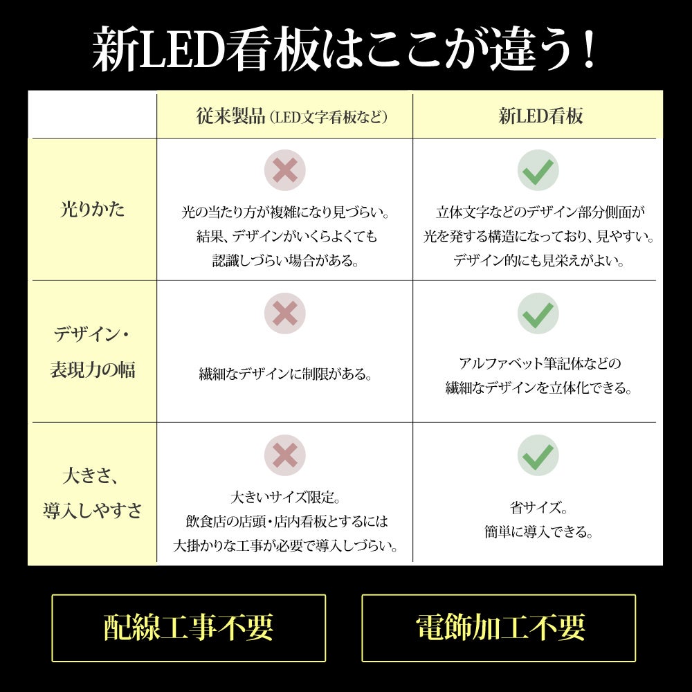 希望のデザインを無限に表現でき、お店の集客や認知拡大、インテリア、イベント案内など幅広い場面で活用できる、新しいLED看板・LEDサインボードを開発しました。