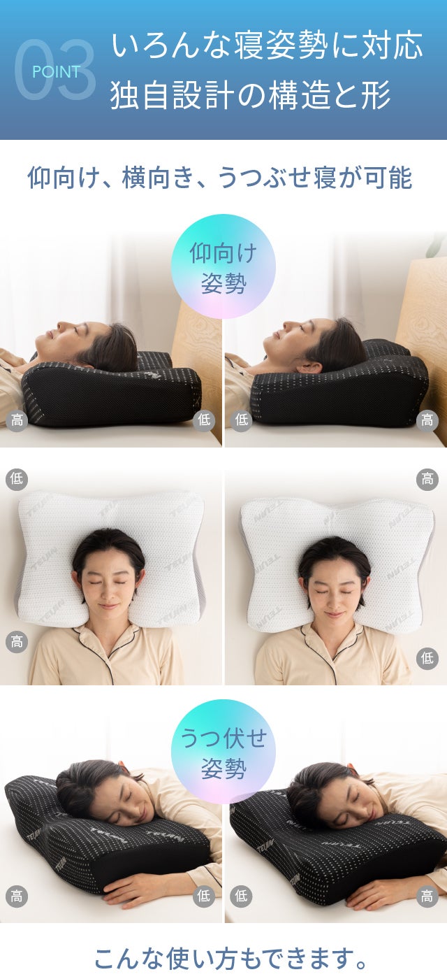 ◆お好みの寝姿勢でご使用ください。(仰向け、横向き、うつぶせ)