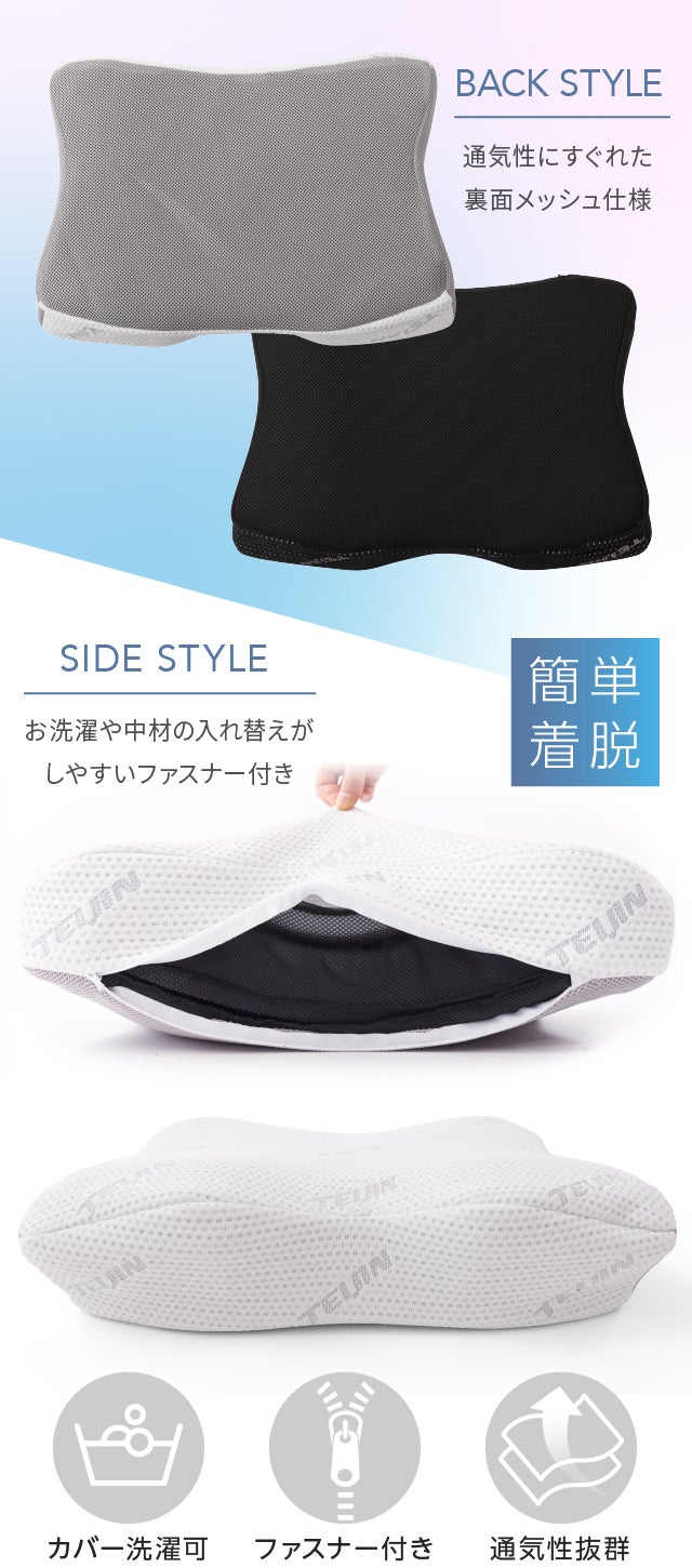 【TEIJIN_快適清潔シリーズ PREMIUM】ネックサポートまくら×1個(ホワイト or ブラックから1つ)