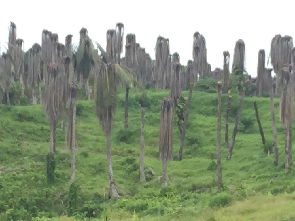 薬剤注入により立ち枯れとなったアブラヤシの木