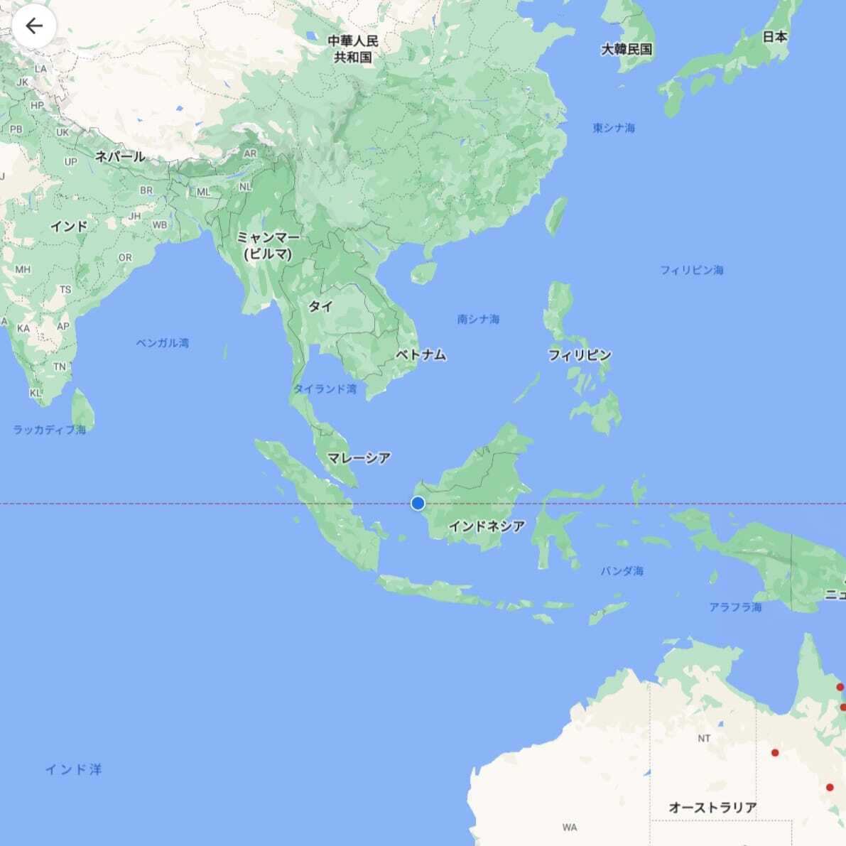 初めてGoogleMapの現在地が赤道上にあるのを見ました!