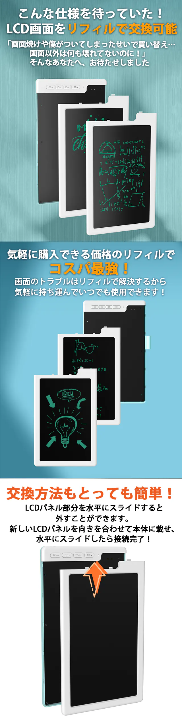 予備として持っておくとますます使いやすくなる交換用LCD画面リフィルです。