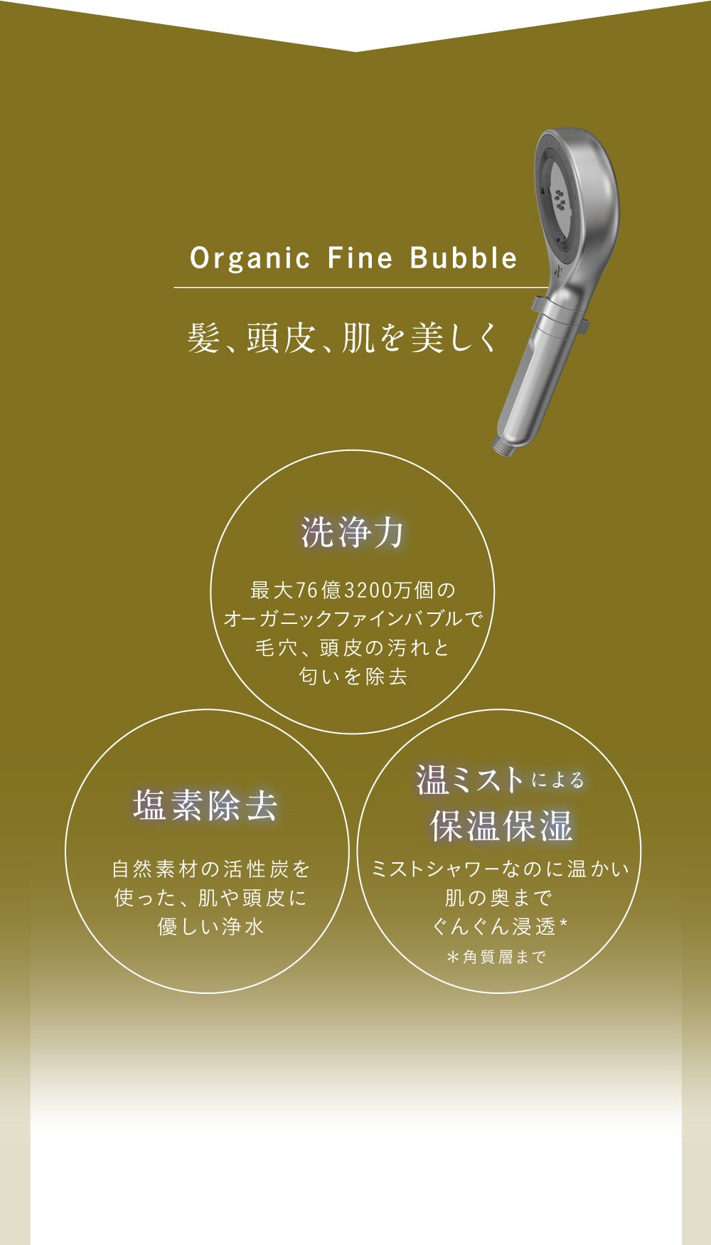 オーガニックファインバブルの効果で血行が良くなり、毛穴の奥までの汚れがとれます。