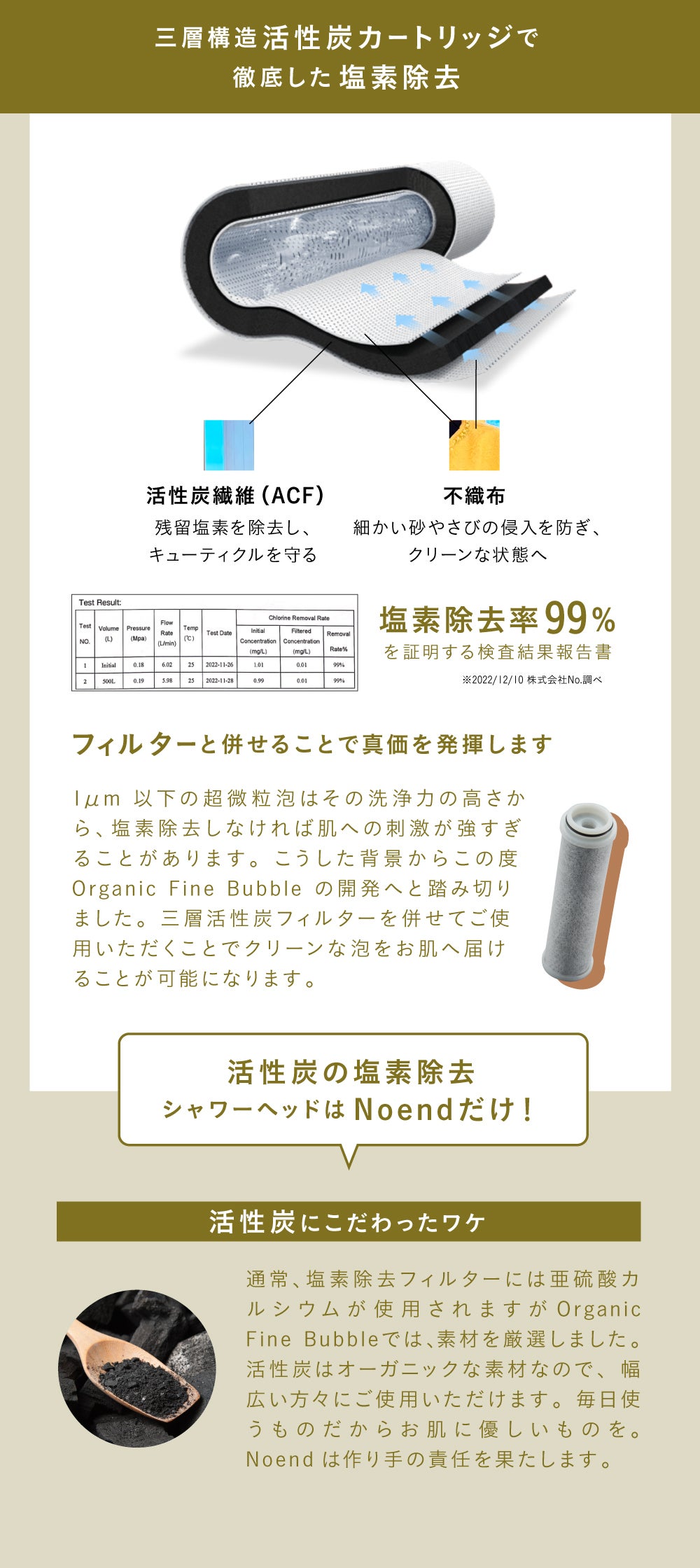 A:シャワーヘッド本体に塩素除去などの浄水機能はありません。三層構造活性炭フィルターを取り付けることで塩素除去されます。