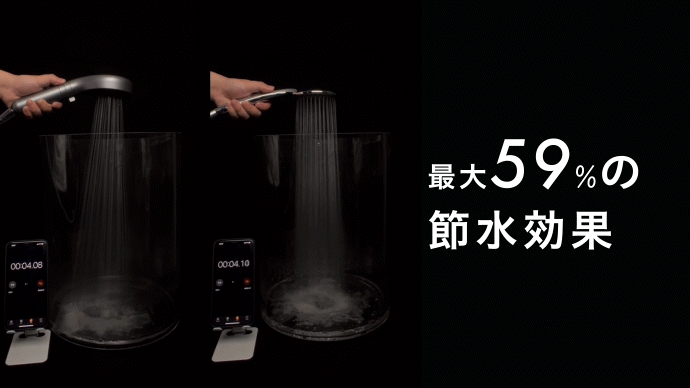さらに、増圧しながらも最大節水率は59%を維持し、【増圧 × 節水】を両立した進化版シャワーヘッドとなっています。