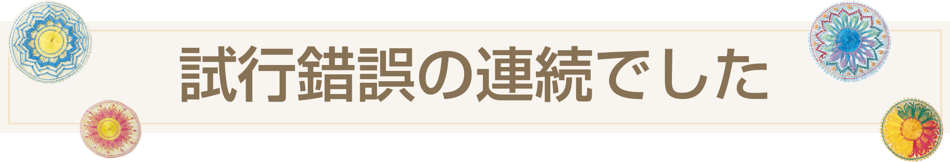 今でこそ教室を開講したり、生徒のみなさんと個展を開催したり、出版させていただいたりしておりますが、全てが順風満帆だったわけではありません。実は当初は、ニャンドゥティの魅力を伝えるために現地の職人が作ったものを直輸入し日本で販売しましたが、うまくいきませんでした。