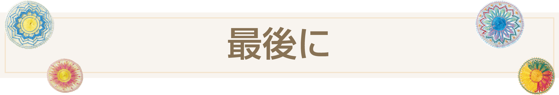 パラグアイの素晴らしい伝統手芸が途絶えることなく、この先もずっと引き継がれていくことを心より願っております。