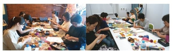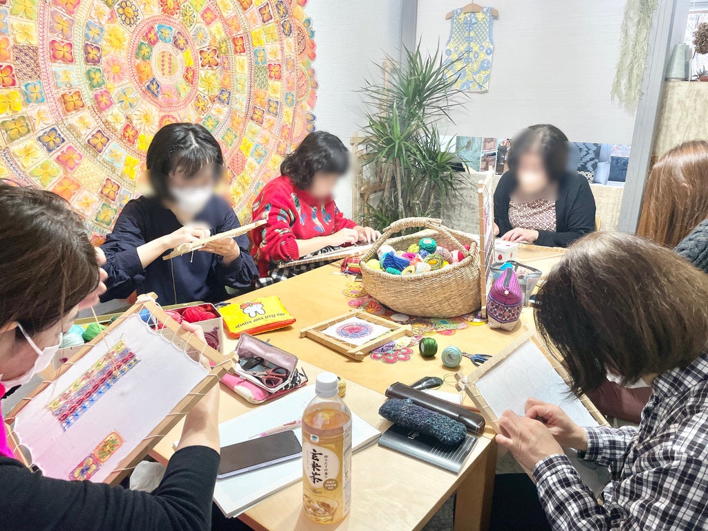 技術習得のための修業期間を経て、2020年から大阪を中心にニャンドゥティ教室を開講し、作品を作る楽しさを伝えています。一緒にニャンドゥティ作りに取り組む方の中には、技術を学び、作家となり、収入を得られる方も多くいます。