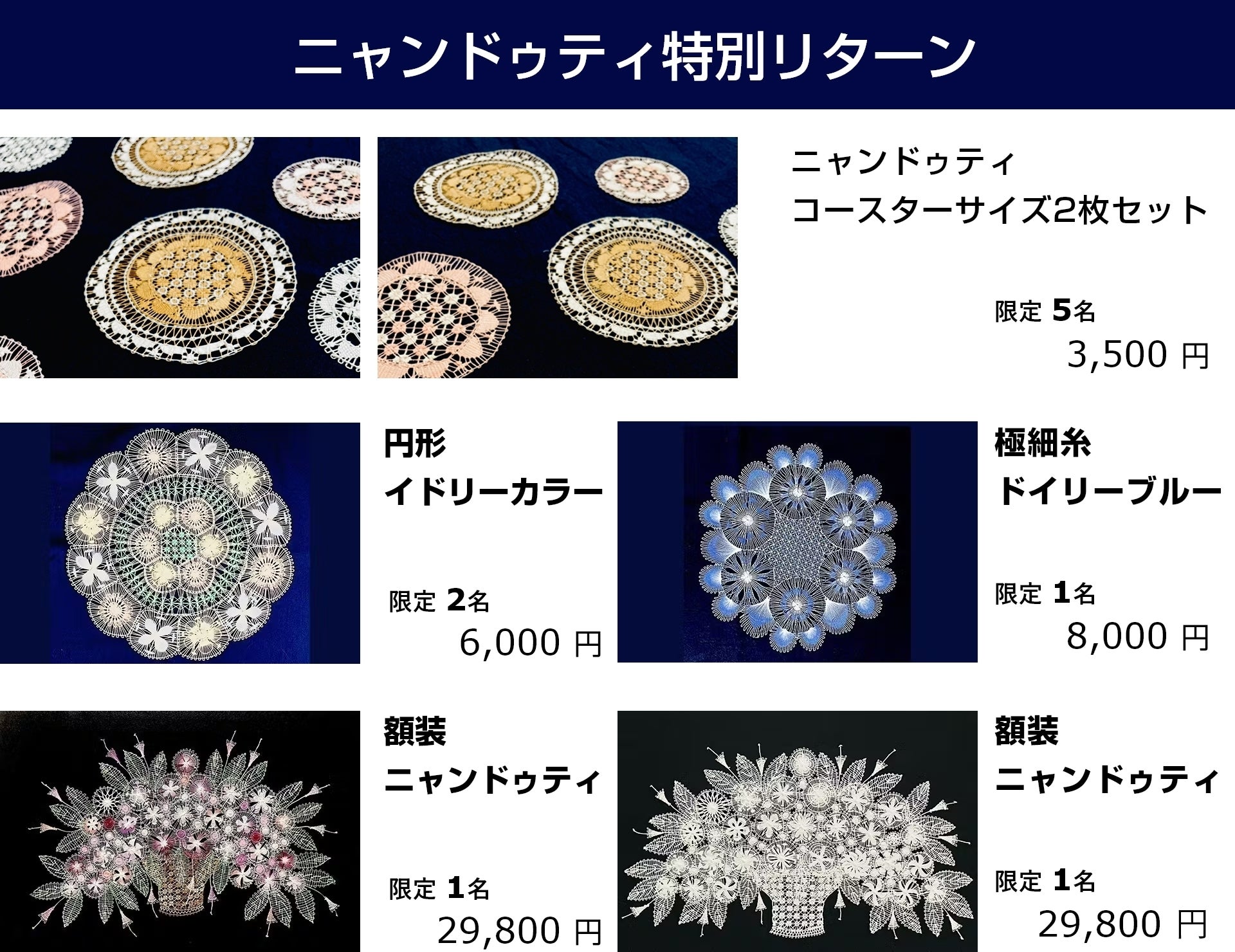 この手芸品をただ単に多くの人に伝えるだけでなく、現地パラグアイの職人さんたちの貧困格差をなくし豊かな生活を送っていただきたいという熱い思いで日々活動されている千森麻由さんに敬意を表します。