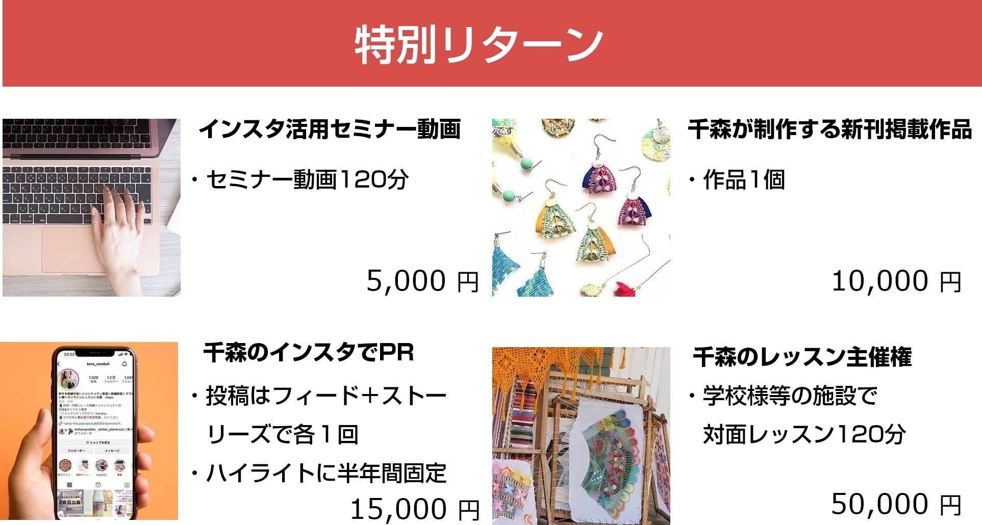 ※作品や糸など、リターンに設定しているものは全て事前に許可を得ております。