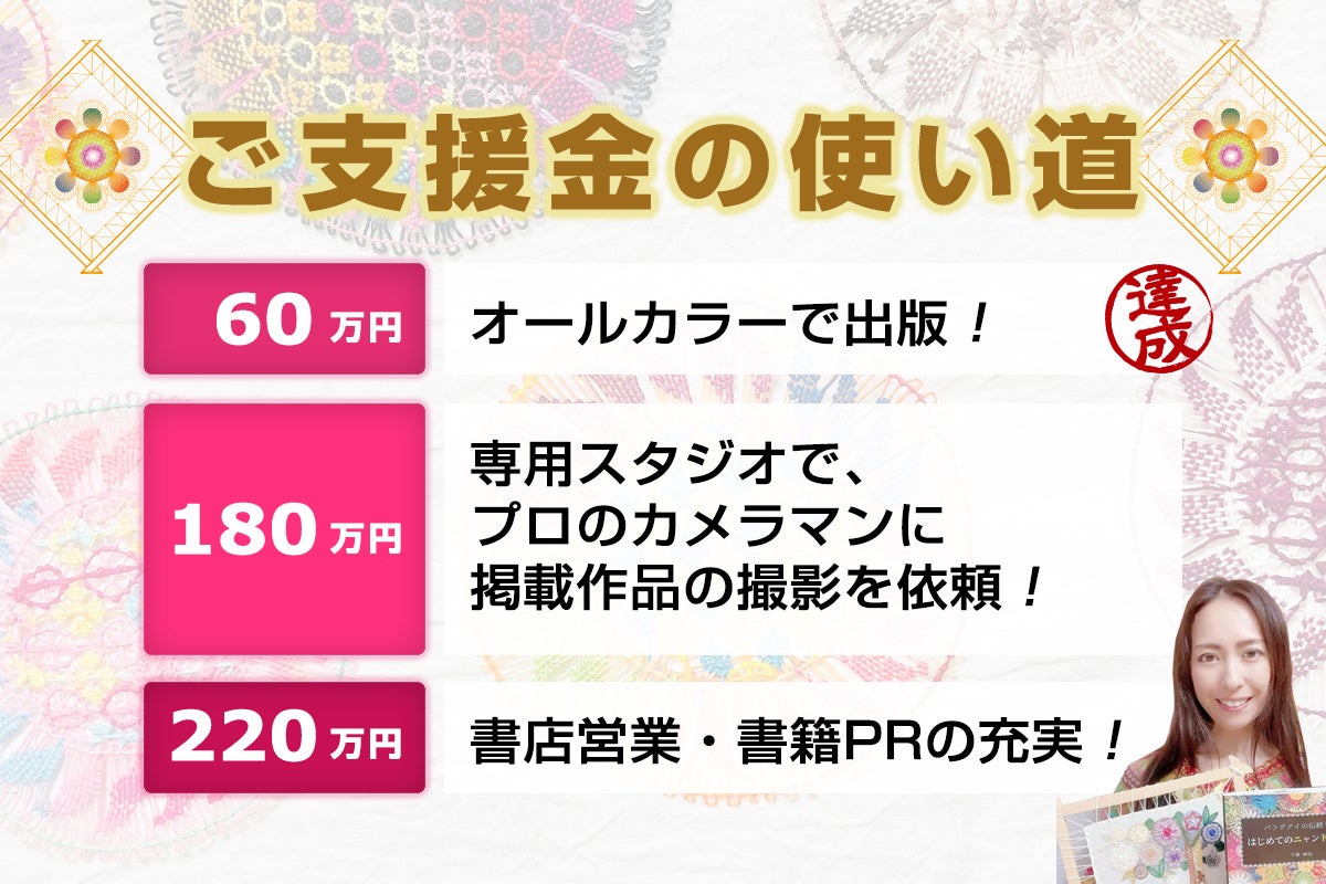 現在、書籍の制作をすすめているところです。彩り鮮やかな伝統の世界観を伝えるために、オールカラーでの出版にこだわりたいと思っています!それには、どうしても印刷代が高額になってしまいます。みなさんにニャンドゥティの美しさを伝えられる書籍を作るために、クラウドファンディングに挑戦させていただきます。ご支援のほどよろしくお願いいたします!