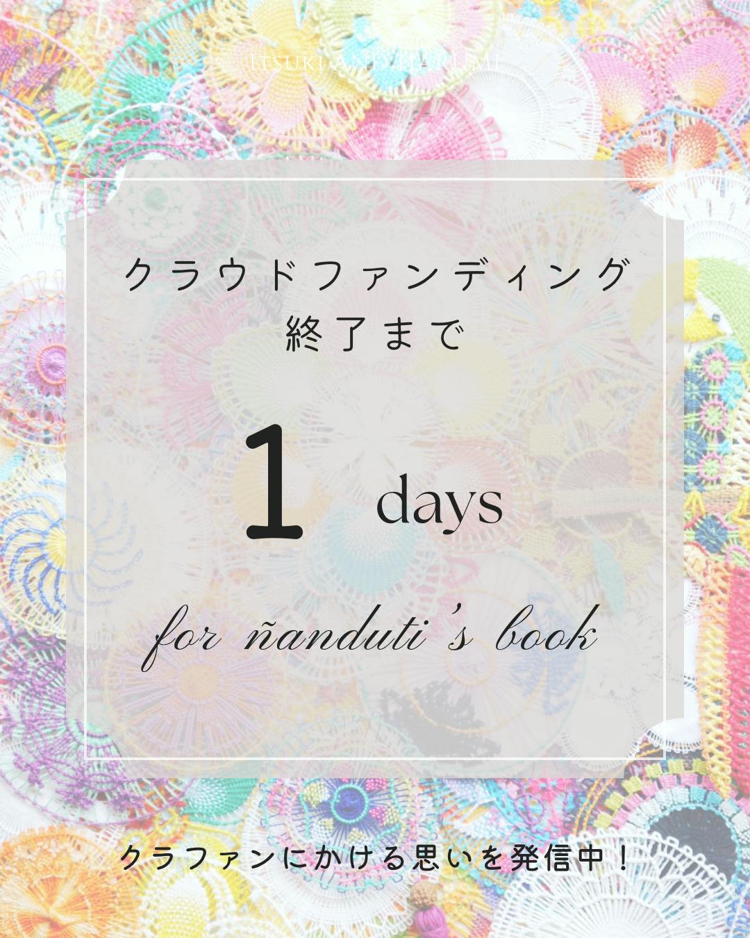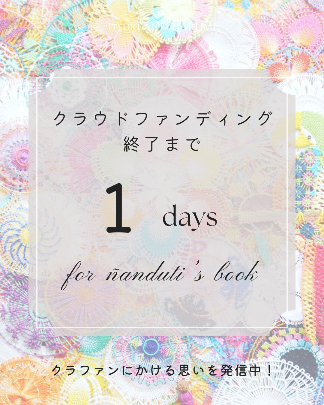 2023/08/31 17:42こんにちは!いつも温かな応援をありがとうございます!!とうとうクラウドファンディング、本日8/31 23:59で終わりを迎えます。現在なんと、201名の方から1675000円のご支援をいただいております泣本当にありがとうございます!!!ネクストゴール達成まで後10万円強!最後の1秒まで走り続けますので、ぜひ見守っていてください^^ラストの本日は22:00-24:00でカウントダウンライブをさせていただきます!ぜひコメントで絡んでやってください。お時間合います方は最後のカウントダウンを一緒にしていただけたら、とても嬉しいです!!!ライブはこちらから。https://instagram.com/kera_nanduti最後に、たくさんたくさんご支援や応援をくださったみなさまへ、私はこのような一斉送信の文面ではなく直接お礼を申し上げたいと考えております。11/12(日)に開催が決定しました出版記念パーティー。パーティーという名のカジュアルな集まりです。ぜひみなさまに直接お礼をお伝えさせてください。120%楽しかった!と思っていただけるよう、ニャンドゥティやパラグアイや美味しい食べ物をたくさんご用意•企画しています。一緒に笑って交流して、幸せな時間を一緒に過ごしたいです。ぜひ、クラファンリターンで詳細ご確認くださいませ^^https://camp-fire.jp/projects/683551/previewみなさまにお会いできますこと、とても楽しみにしております! もっと見る