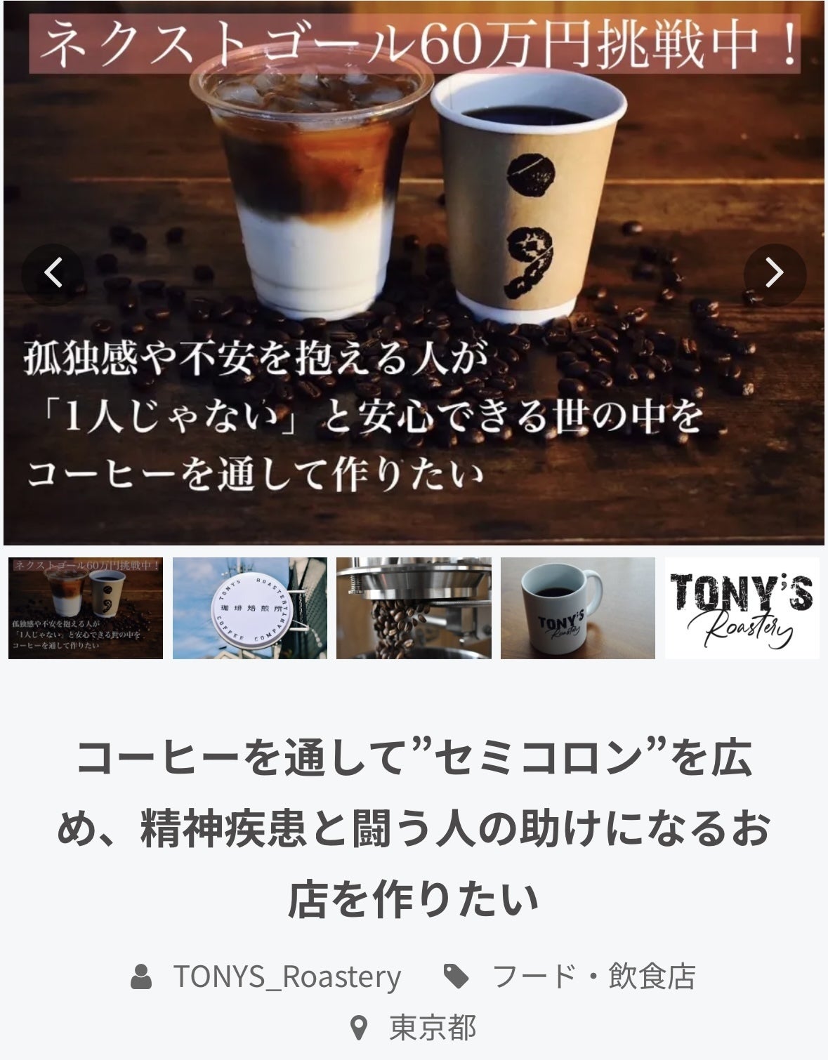 TONY’S Roasteryさんというコーヒーショップが精神疾患と闘う人々を応援するアメリカの運動「プロジェクトセミコロン」を日本に広めようとクラウドファンディングで都内出店の開業費を募りました。この活動を見て私にも出来ることは無いかと日々考えていました。