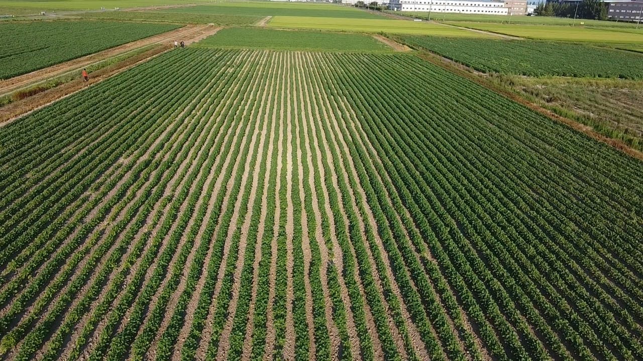大豆畑のうね間