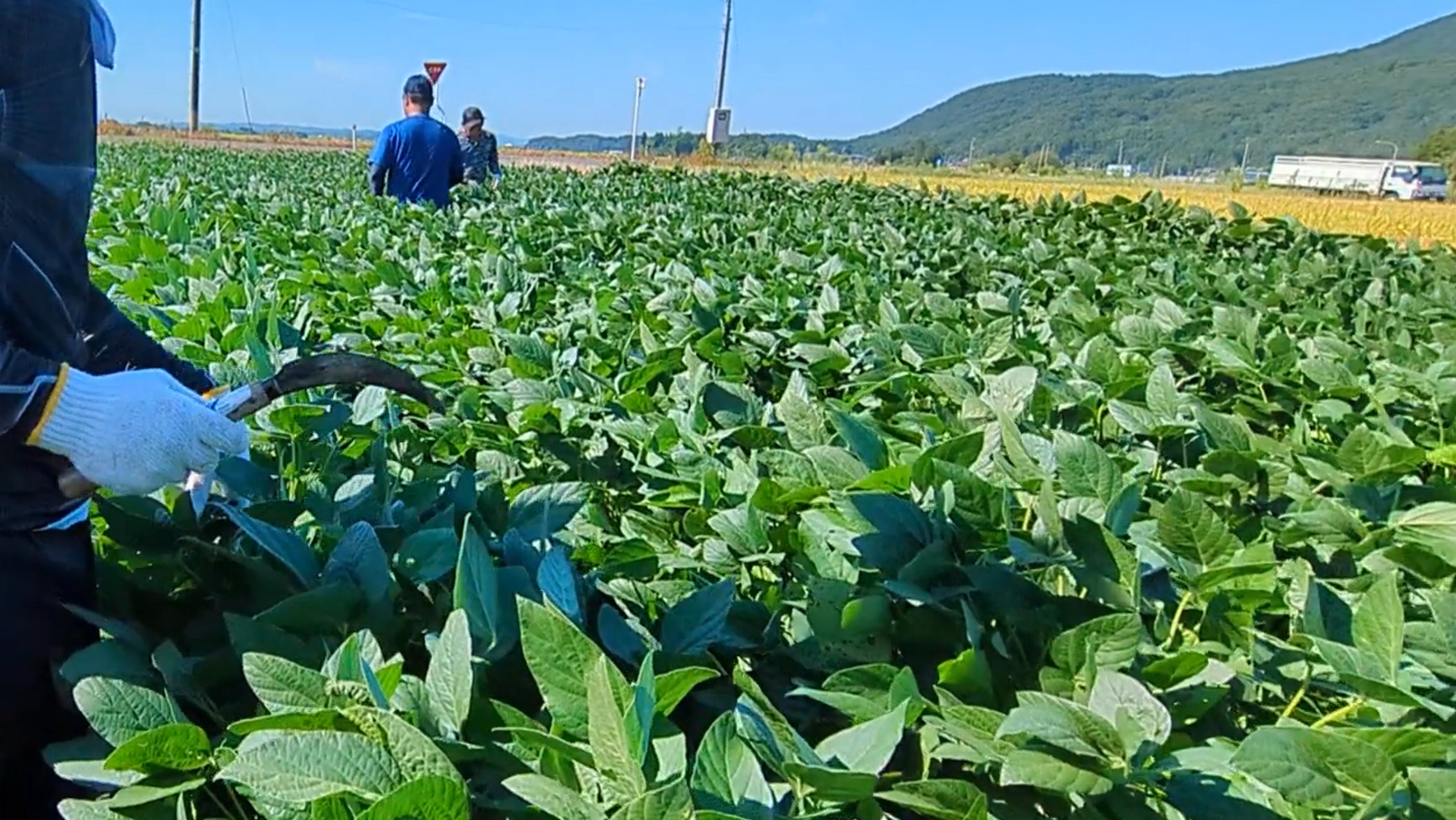 大豆畑の草取りのようす