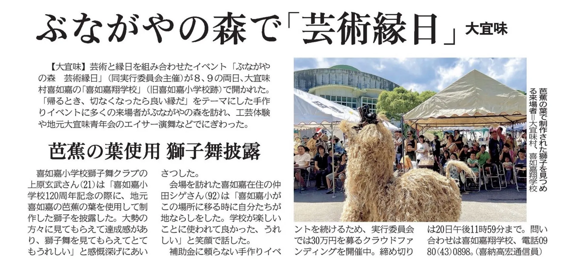 ご報告が遅くなりましたが、7月8・9日に「ぶながやの森 芸術縁日」無事開催することができました。