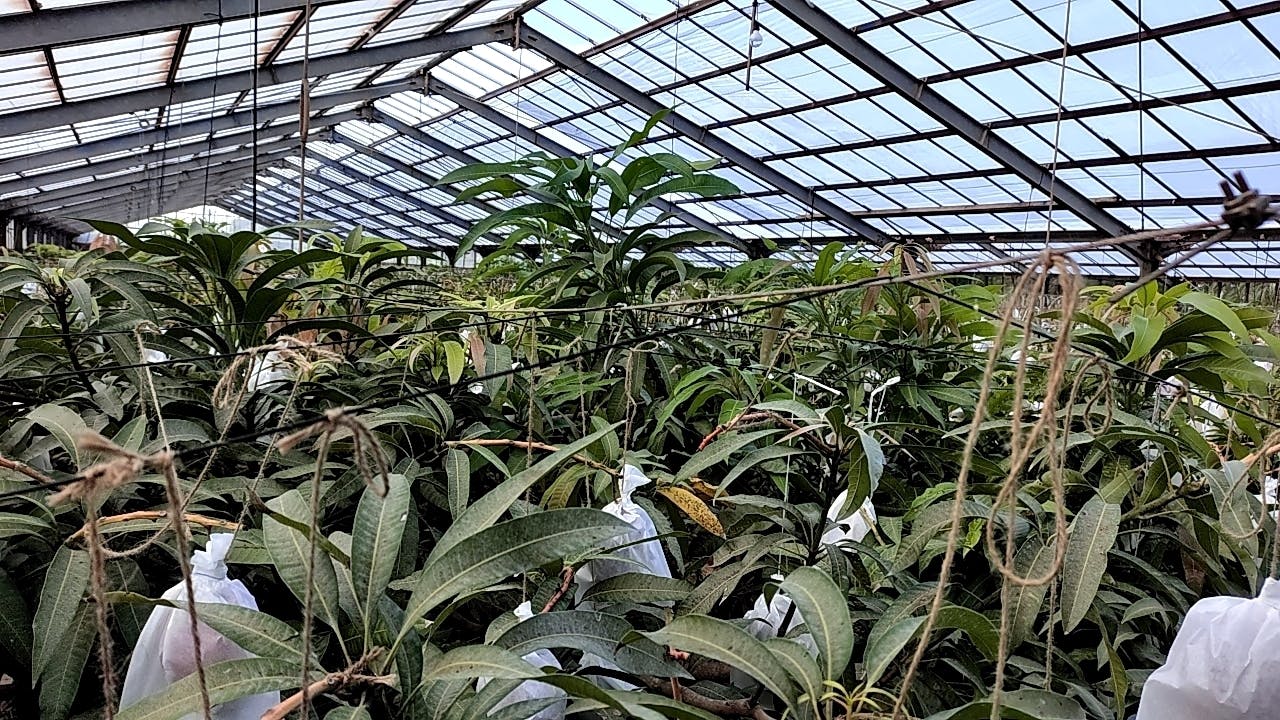 今朝もマンゴー収穫のアルバイト、写真はマンゴーハウスの中です。なかなか中は見れませんが、こんな感じです。