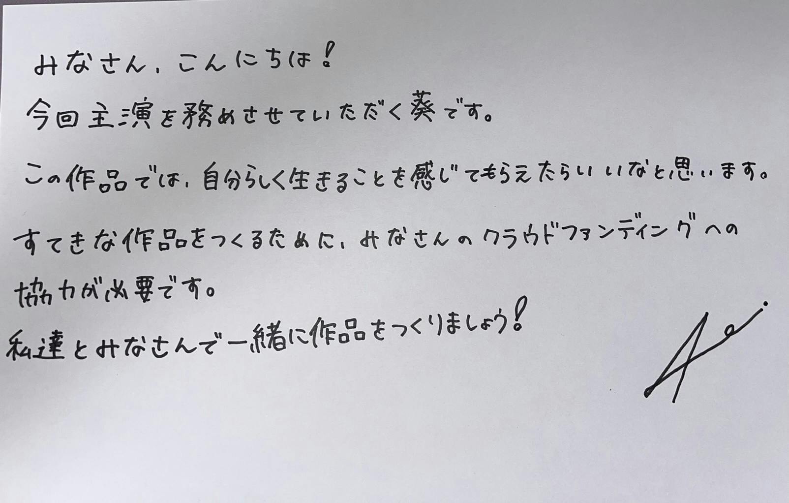心からの感謝とともに、皆さまのご支援をお願い申し上げます。私たちの映画プロジェクトに共感してくださり、ご支援いただけることを心より楽しみにしています。ありがとうございました。