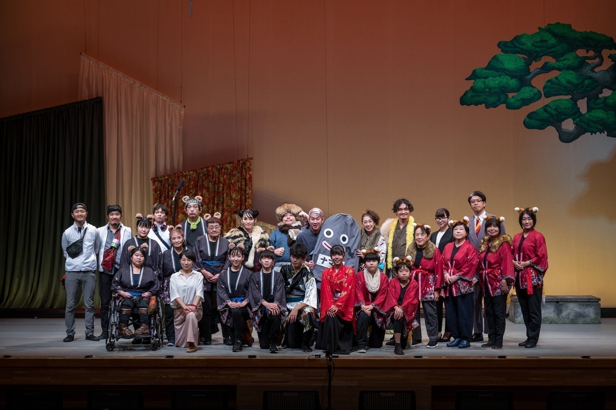 吉川市の演劇プロジェクトにおいては、参加者を高齢者に限らず、子供から大人までの多世代の市民による演劇公演として、2017年は「Y市のフシギな住人たち」、2018年は「あゆみ」、2019年は「らしょうもんのおに(作・馬場のぼる)」を上演。年齢、性別、出身、経歴はバラバラ、ハンディキャップのあるなしも関係無く、市民が力を合わせ、まさに多様性溢れる舞台(=世界、社会)を創り出してきました。