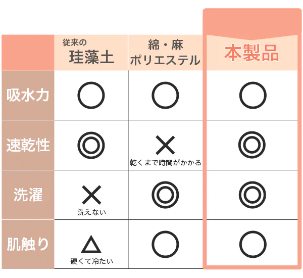 高品質の珪藻土を採用することで、瞬時に吸水してサラサラに!