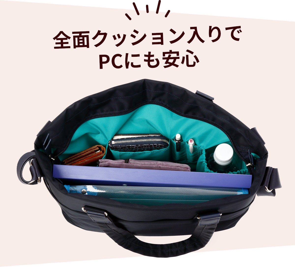 使いやすさはポケットから。収納しやすく、裏地を明るくして収納した場所も特定しやすいので、モノの出し入れにストレスを感じずに済みます。