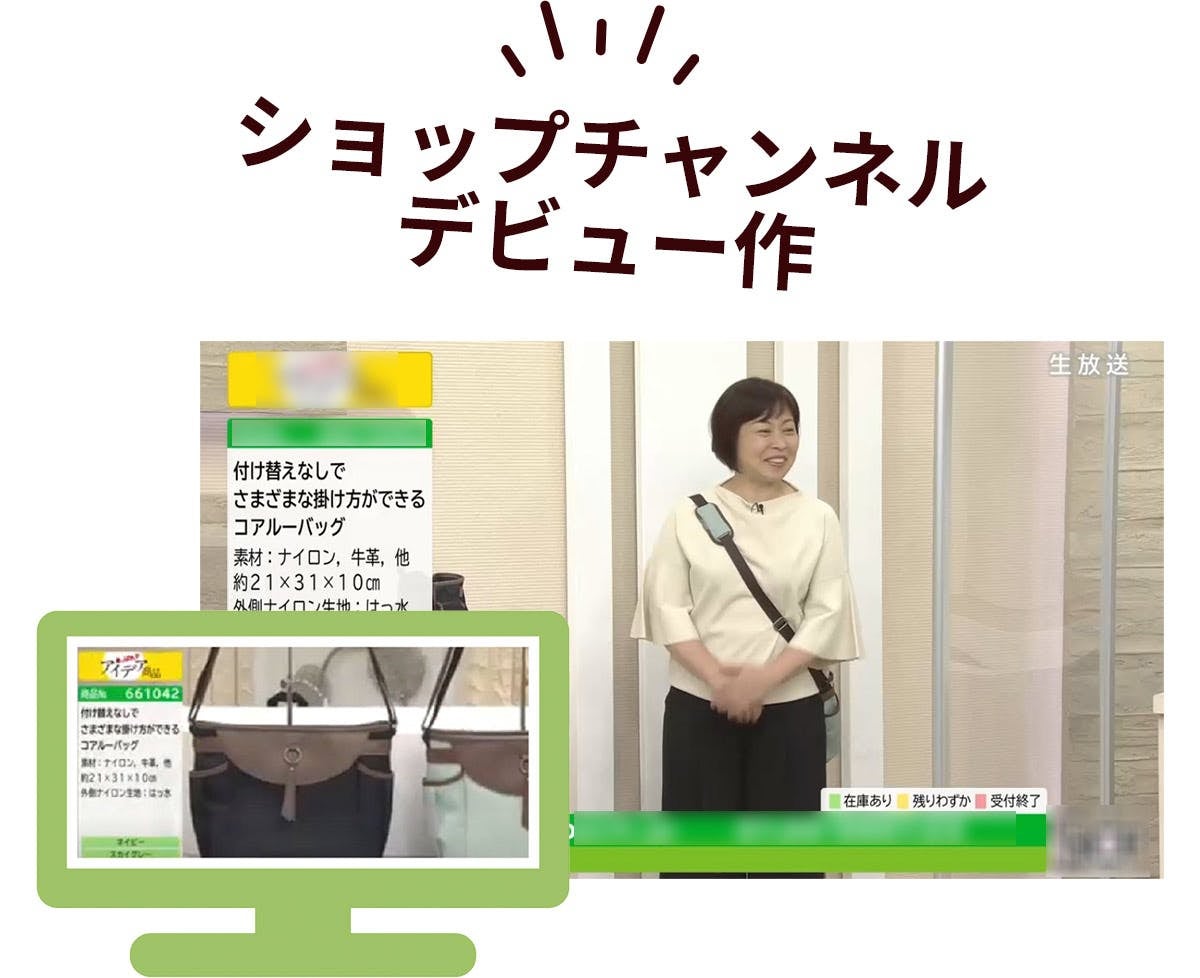 コアルーバッグは、上でご紹介したニューマルシェを含め、テレビショッピングで人気ですが、こちらの「マリー」は2020年2月にデビューした時の作品です。この時から細部に至るまでのデザインに本格的にかかわるようになったので特に思い入れも大きいですね。