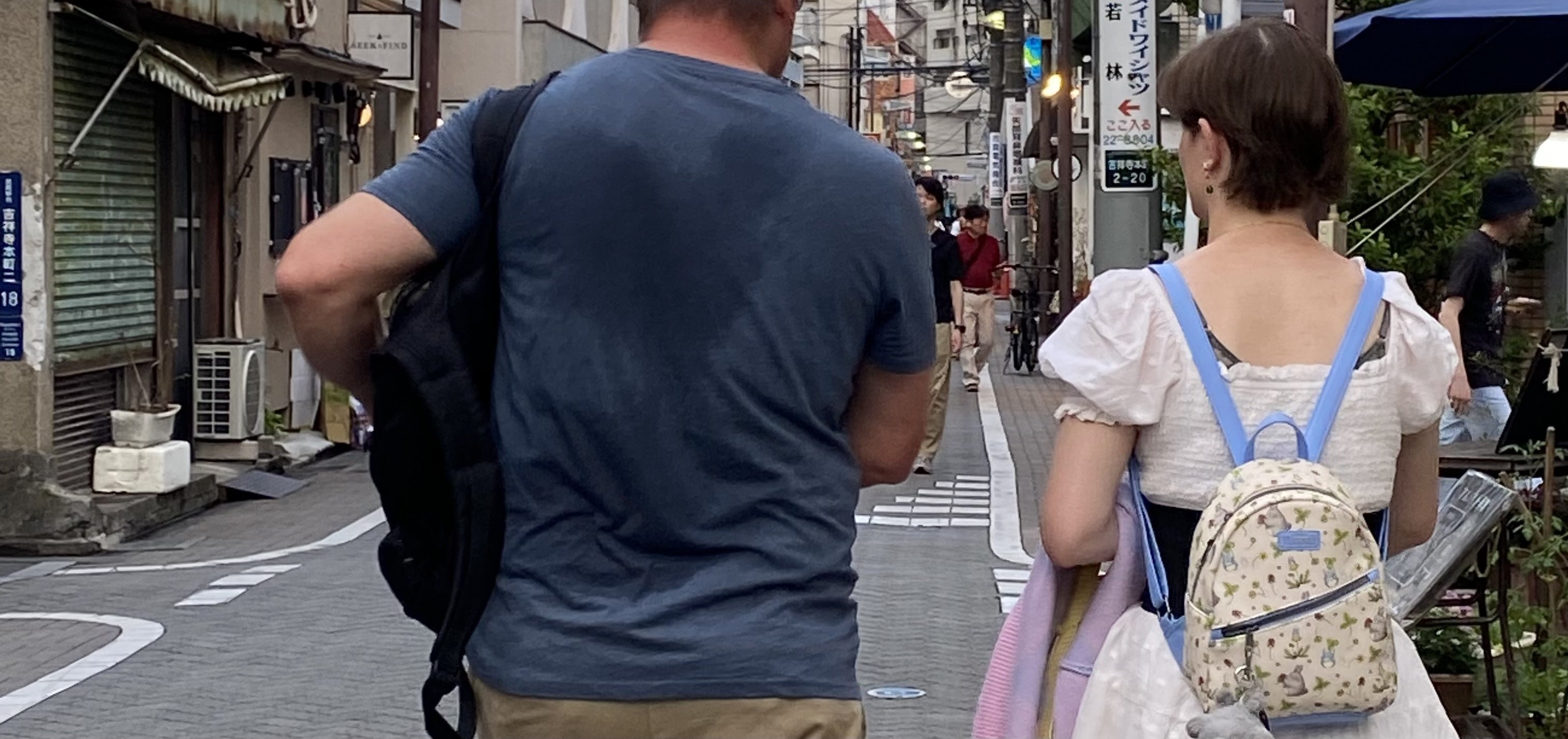 写真は地元吉祥寺で外国人二人の後ろ姿ですが
