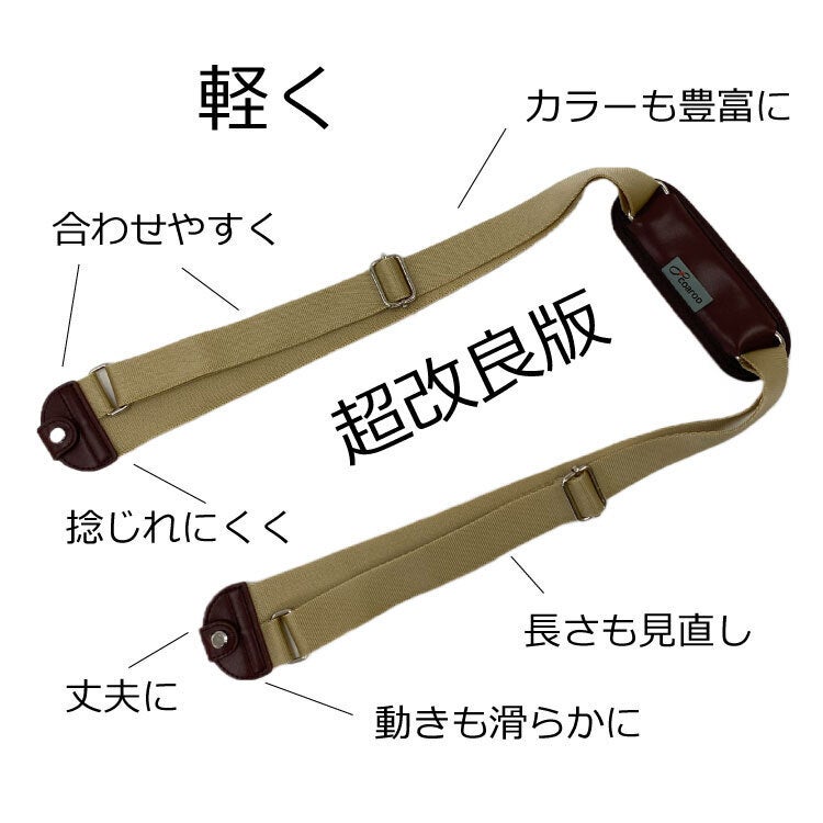 前回のストラップより全体的に短くなったので、通常はLサイズですが、身長150センチ前後でやせ型の体形の方や未成年者の方にはSサイズをお勧めします。サイズ交換は送料も無料で行っておりますので、合わない時には遠慮なくご連絡ください。